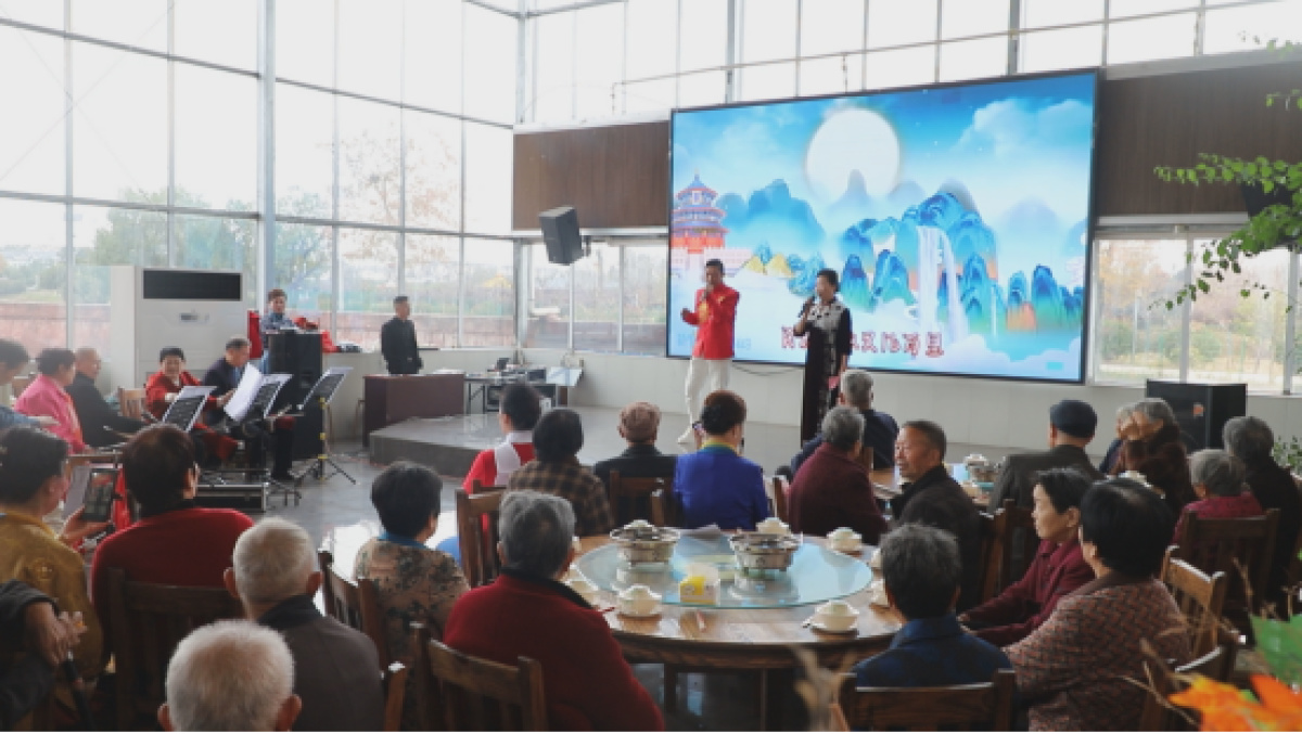 早上10点钟不到,村里组织的志愿者演出团队就聚集在了现场,为老人们献上一场高水准的文化盛宴。整场节目形式丰富多样、内容贴近民心。歌舞表演活力满满,悠扬的歌声与优美的舞姿赢得台下阵阵掌声;戏曲选段韵味十足,熟悉的旋律勾起老人们的美好回忆,不少老人跟着轻轻哼唱,脸上洋溢着幸福的笑容。演员们用真诚的表演传递着对长辈的祝福,台下老人或坐或站,看得津津有味,现场暖意融融。