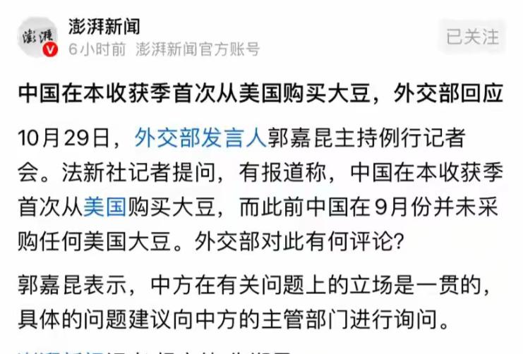 巴西傻眼了!中国突然宣布恢复采购美国大豆,双方趋势缓和;巴西豆农之前不断给中国涨价,终于品尝恶果! 最新消息:10月29日媒体透露,中国最近购买了三船美国大豆,预定在12月至2026年1月装船,一共18万吨。这是2025-26年美国大豆销售年度,中国首次购买美国大豆。这个估计最不开心的就是巴西!他们太郁闷了! 这看似普通的贸易数据,却让巴西桑托斯港的粮商们连夜开会——码头上堆积的200万吨大豆正以每天120万美元的速度吞噬利润,而中国买家突然转向的信号,彻底击碎了巴西人"大豆定价权在握"的幻想。 当中国暂停采购巴西大豆的消息在9月传出时,圣保罗期货交易所的大豆期货价格应声暴跌12%。但巴西粮商们显然误判了形势。 他们将大豆报价从每吨4200元炒到479美元(约3.3万元人民币),较美国大豆溢价超30%,甚至对欧洲客户报价比中国低20美元来刺激出货。 这种"杀鸡取卵"的策略,直接导致中国压榨厂集体取消800万吨订单,相当于巴西全年对华出口量的七成。 但巴西人没想到,中国早布好了"后手棋"。当巴西新季大豆即将在3月上市时,中国突然重启美豆采购,且首批18万吨订单直指美国中西部农场。 这些大豆的到岸价虽比巴西高8.5%,但运输周期缩短15天,恰好赶上春节备货期。更致命的是,中国同步启动国储大豆抛售,4500万吨储备粮随时可平抑市场,这让巴西粮商陷入"两头堵"的绝境。 这场看似简单的农产品交易,实则藏着中美贸易谈判的深层博弈。2025年10月,美国财政部长贝森特透露,中国可能将芬太尼关税从34%降至10%,作为交换条件,中方恢复部分美豆采购。 这种"以粮换税"的操作,与2018年贸易战时中国对美大豆加征25%关税的策略如出一辙,但这次中国多了个"杀手锏"。 国内大豆产量已连续三年增长52%,非转基因大豆在豆腐、豆浆市场的份额突破60%,让进口依赖度从80%降至65%。 巴西的悲剧在于低估了中国供应链的韧性。当巴西粮商囤积居奇时,中国正悄悄布局"一带一路"替代渠道:俄罗斯远东新季大豆11月启运,乌拉圭对华出口增长30%,甚至阿根廷的豆粕替代技术让中国饲料厂每年省下千万吨大豆需求。 这种"多条腿走路"的策略,让中国在大豆贸易中从"被动接盘"变成"规则制定者"。 当年荷兰东印度公司控制香料贸易时,中国商人通过"海上丝绸之路"建立平行供应链;如今面对巴西大豆涨价,中国同样祭出"进口多元化+技术替代"组合拳。 2025年数据显示,中国豆粕减量技术已让饲料蛋白利用率提升至85%,相当于每年少消耗大豆1200万吨——这比巴西全年产量的7%还多。 巴西农业部长卡斯特罗最近在国会摔了文件:"我们控制着全球34%的大豆出口,凭什么要听中国的?"但现实给了他一记耳光,中国暂停采购的800万吨订单,直接导致巴拉那州12%的农户放弃耕种,圣保罗州粮仓的库存积压足以填满三个西湖。 更严峻的是,巴西农业高度依赖外资:四大粮商控制着从种子到物流的全产业链,而中国正在用人民币结算打破这种垄断。 这场危机暴露了资源出口国的通病:把资源当摇钱树,却忽视产业链建设。就像1970年代的石油危机让阿拉伯国家明白"资源诅咒"的可怕,巴西的大豆困局警示着:没有技术含量的初级产品,终究难逃被替代命运。 反观中国,从大豆进口转向扶持国产非转基因品种,从被动采购到建立全球供应链网络,这才是真正的"粮食安全密码"。 未来推演:全球粮市将迎来三大变局。价格体系重构:巴西大豆溢价空间被压缩至5%以内,美国中西部农场主可能重新掌握定价权。 技术标准争夺:中国推广的豆粕减量技术若被采纳,全球饲料行业将减少15%的大豆需求。地缘格局洗牌:阿根廷、乌拉圭等南美国家或成中美博弈新战场,中国或推出"南方共同市场"粮食采购协议。 从2018年对美大豆加征关税,到2025年重启采购,中国用七年时间完成了一场教科书级的供应链攻防战。 当巴西粮商在码头看着腐烂的大豆时,他们应该明白:在这个全球化的时代,任何试图用垄断绑架市场的行为,终将被时代抛弃。 这场大豆风波留给世界的启示是:真正的粮食安全不是靠囤积居奇,而是构建"自主可控+全球协同"的供应链体系。 当中国既能用国产大豆满足主粮需求,又能用进口大豆平衡市场,这才是真正的大国粮策。毕竟,饭碗要端在自己手里,但装什么粮、怎么装,我们早就不必听命于人。 对此你有什么看法,欢迎来评论区聊聊。