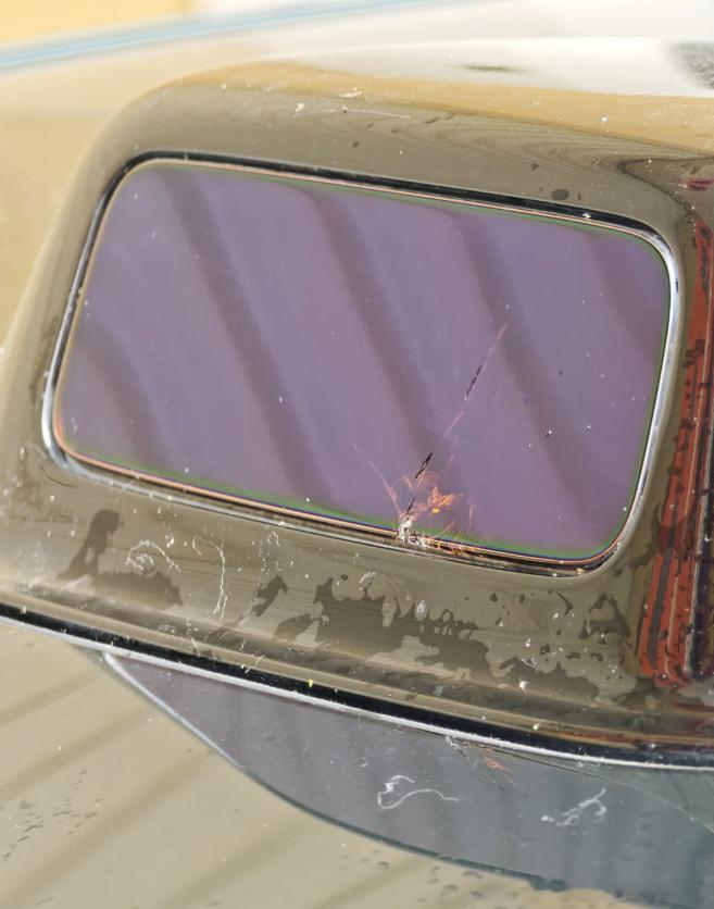 这是高速被异物砸的吧,这种情况的破损应该是已经影响光束发射了,建议尽快维修!