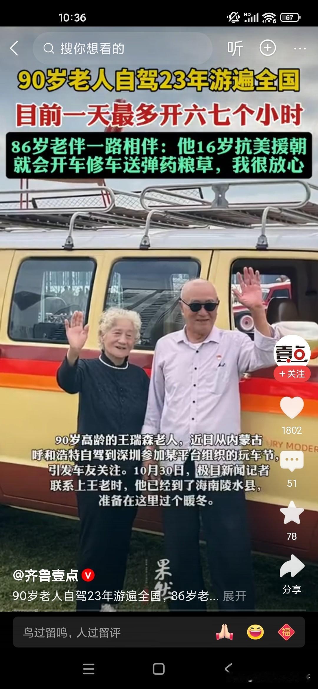这个老头九十多岁了,还能来自驾游,而且23年里把全国的各个地方的5a4a景区都转遍了,九十多了,非常了不起,让我们年轻人都感到汗颜,我们很多年轻人根本没有时间出去的,有的是没有金钱,有的是没有车,有的是没有时间,但是看看这现在的这些老头老太太们不是跳广场舞就是出去旅游,如果你去各大景区的话,尤其是工作日去的话,大部分都是老年人,他们非常的活跃,比我们有活力多了,我们年轻人是不是应该做点什么呢?