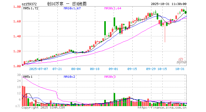 10月31日,截止午间收盘,创业板50ETF万家(159372)跌1.79%,报1.698元,成交额143.63万元。创业板50ETF万家(159372)重仓股方面,宁德时代截止午盘跌0.88%,中际旭创跌6.94%,东方财富涨0.04%,新易盛跌6.44%,阳光电源跌1.38%,胜宏科技跌9.32%,汇川技术涨0.48%,迈瑞医疗跌0.98%,亿纬锂能涨0.85%,同花顺跌0.61%。