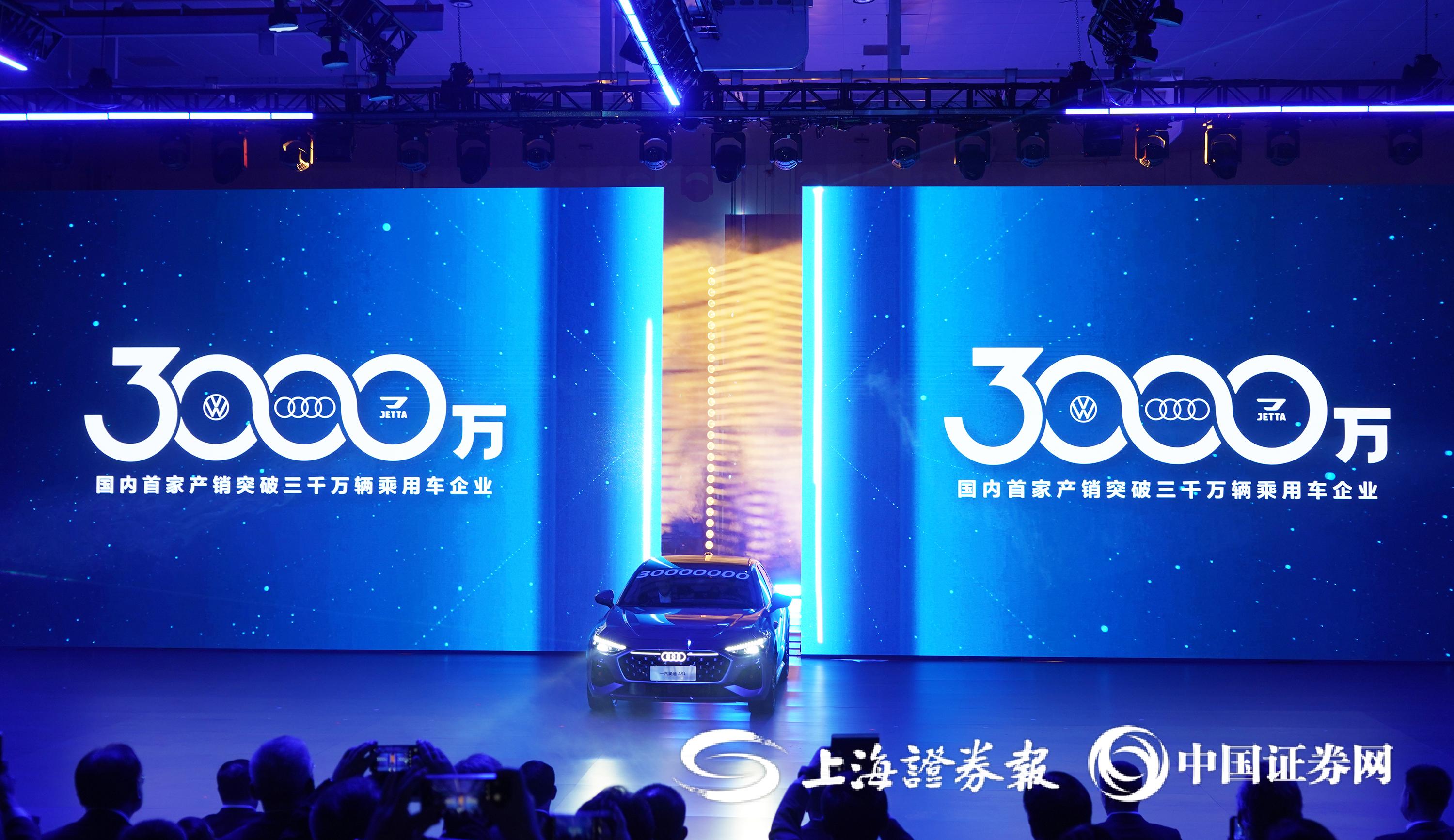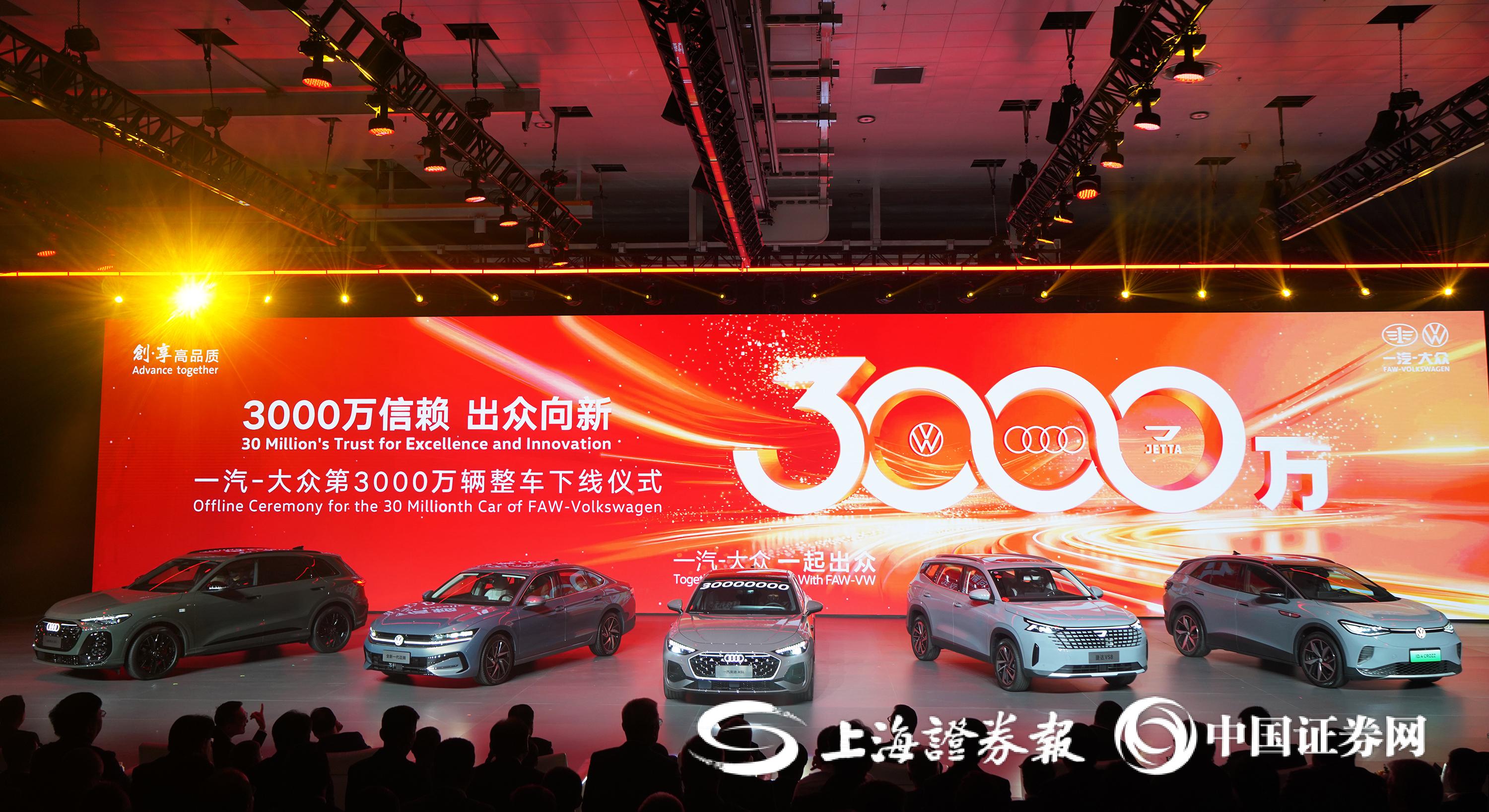 上证报中国证券网讯(记者田甜)10月30日晚,一汽-大众长春生产基地灯火通明。随着一辆全新奥迪A5L缓缓驶下生产线,一汽-大众正式迎来第3000万辆整车下线的历史性时刻,成为国内首家达成这一产销规模的乘用车企。