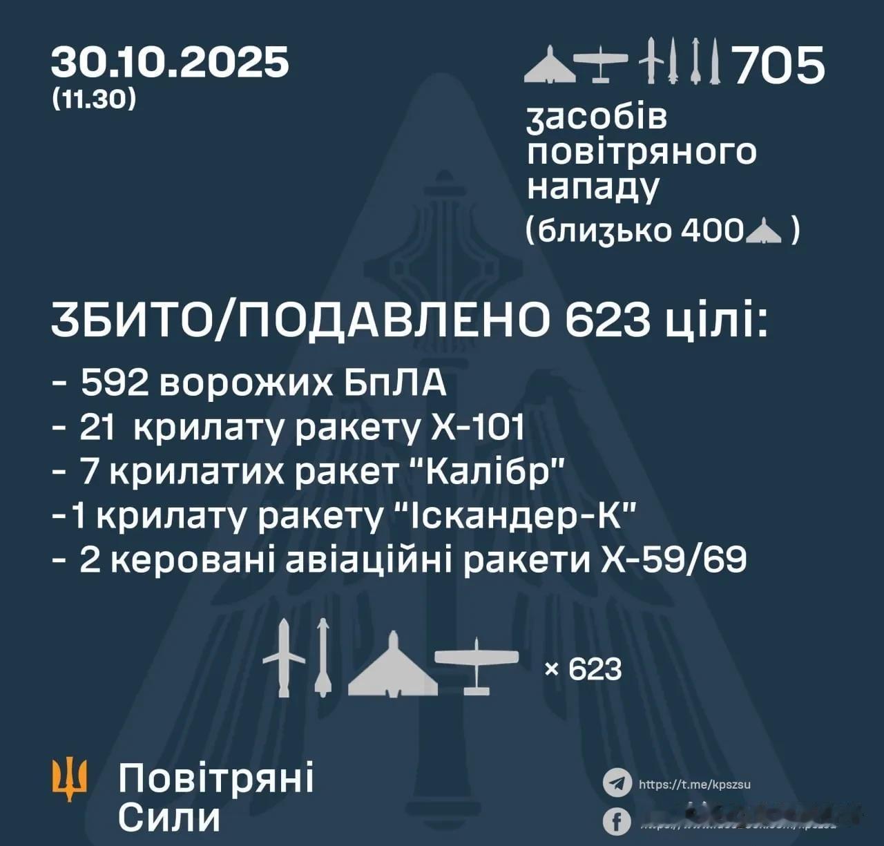 乌克兰这个冬天算是彻底过不去了!俄罗斯无人机的产量越来越多,已经刹不住闸了。 最新消息,基辅当地时间30号夜间。 俄罗斯对乌克兰全境发动了两波大规模的进攻。 发射了至少61枚各类型导弹以及700多架无人机。 这次大规模的空袭之后,俄军公布了一些具体的数据。 俄军有10%的无人机和导弹被乌军拦截。 剩下的所有无人机和导弹都击中了目标。 此次俄罗斯的打击范围还是基础能源设施。 尤其是乌克兰西部的热电厂,水电站,燃气储存设施。 以及乌军的空军基地。 俄军的战术很明显就是要让这个冬天变得极度的难熬。 就是要让寒冷天气变成俄罗斯的武器。 乌克兰最新的消息报道称,这次袭击造成了大面积的停水停电。 很多城市刚刚恢复供电和供水还没有24个小时呢,就再次遭到了袭击。 现在已经没有什么别的办法了。乌克兰人民还是祈祷上帝盼望今年是个暖冬吧。 剩下的时间赶紧砍柴。 这是度过寒冬的唯一办法。 最好的办法就是立刻跟俄罗斯谈判,马上按照现在的军事分界线停火。 不要奢望其他的条件了。 欧洲人还幻想着用俄罗斯的扣押资金来当乌克兰的重建资金。 您觉得普京他们能答应吗?