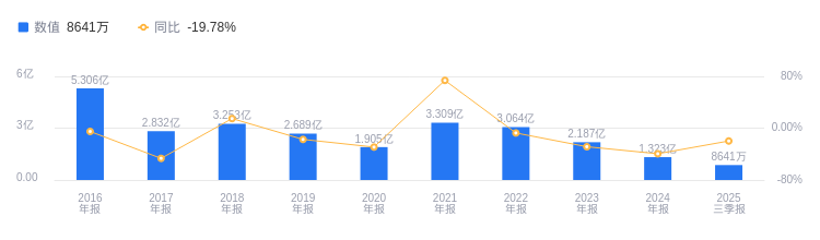 2025年三季度,海宁皮城营业收入为7.07亿元,在行业14家公司中排名第11。行业第一名豫园股份营收284亿元,第二名小商品城130.61亿元,行业平均数为47.82亿元,中位数为9.17亿元。同期,净利润为8641.3万元,行业排名第8。行业第一名小商品城净利润34.65亿元,第二名富森美4.87亿元,行业平均数为8830.67万元,中位数为9453.82万元。