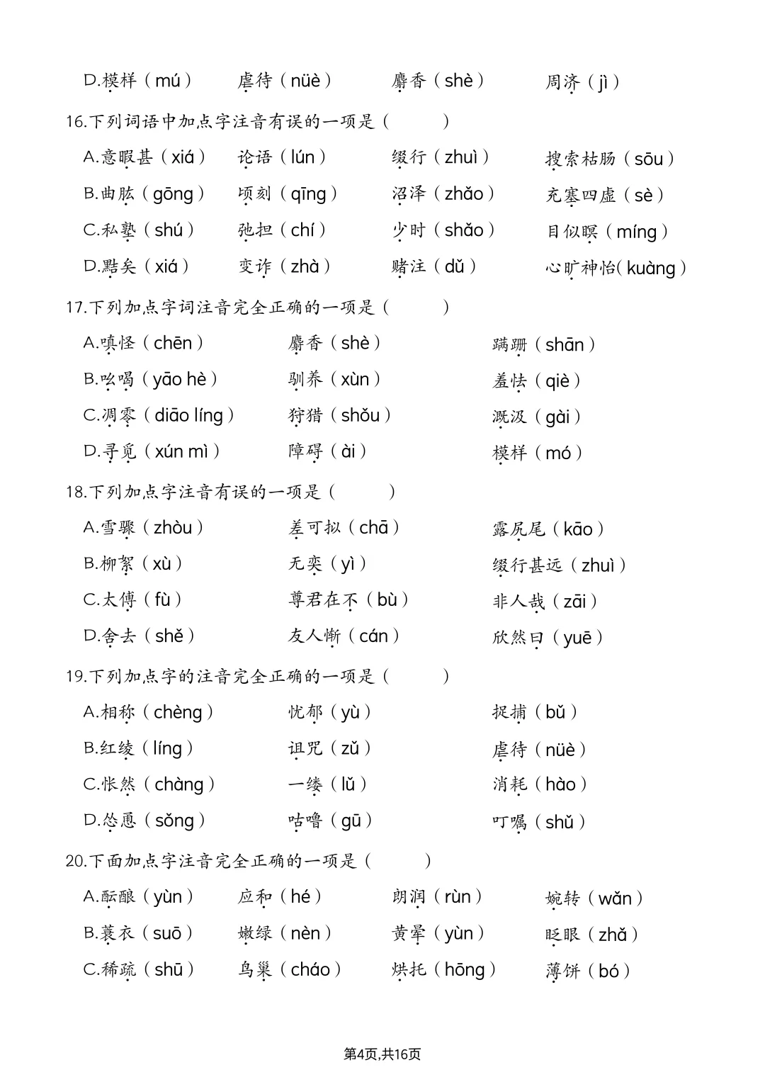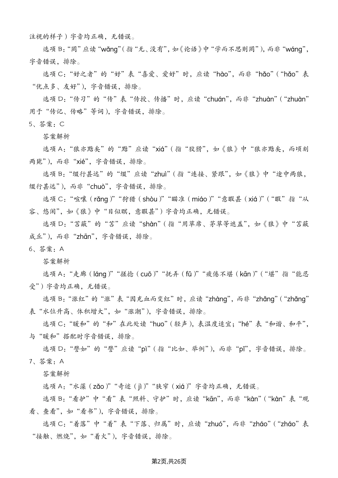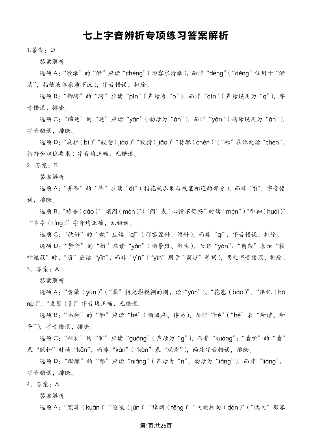 七上语文丨字音辨析专项练习(含答案解析)