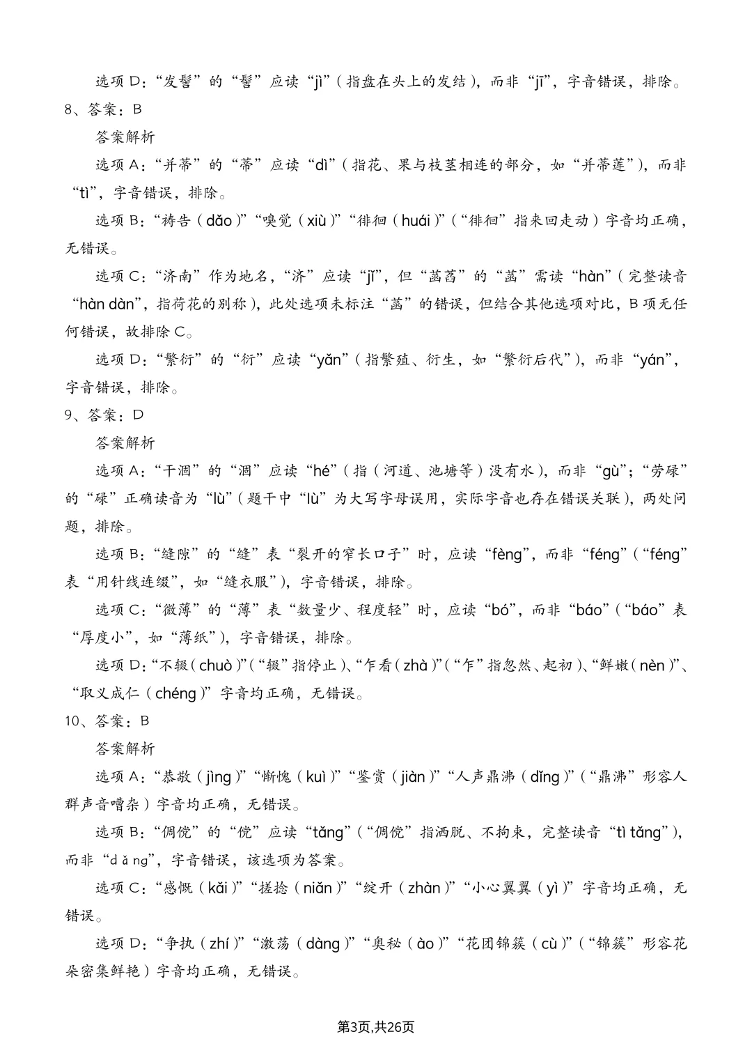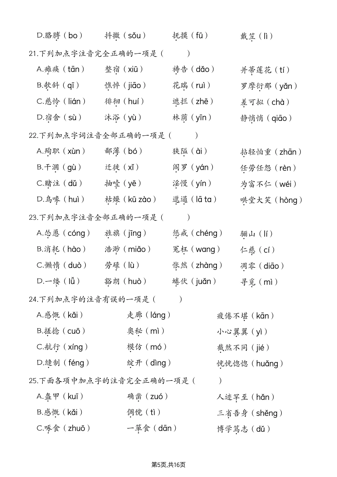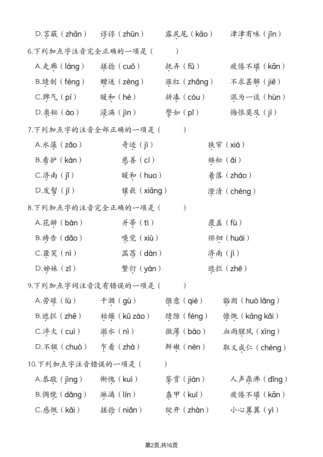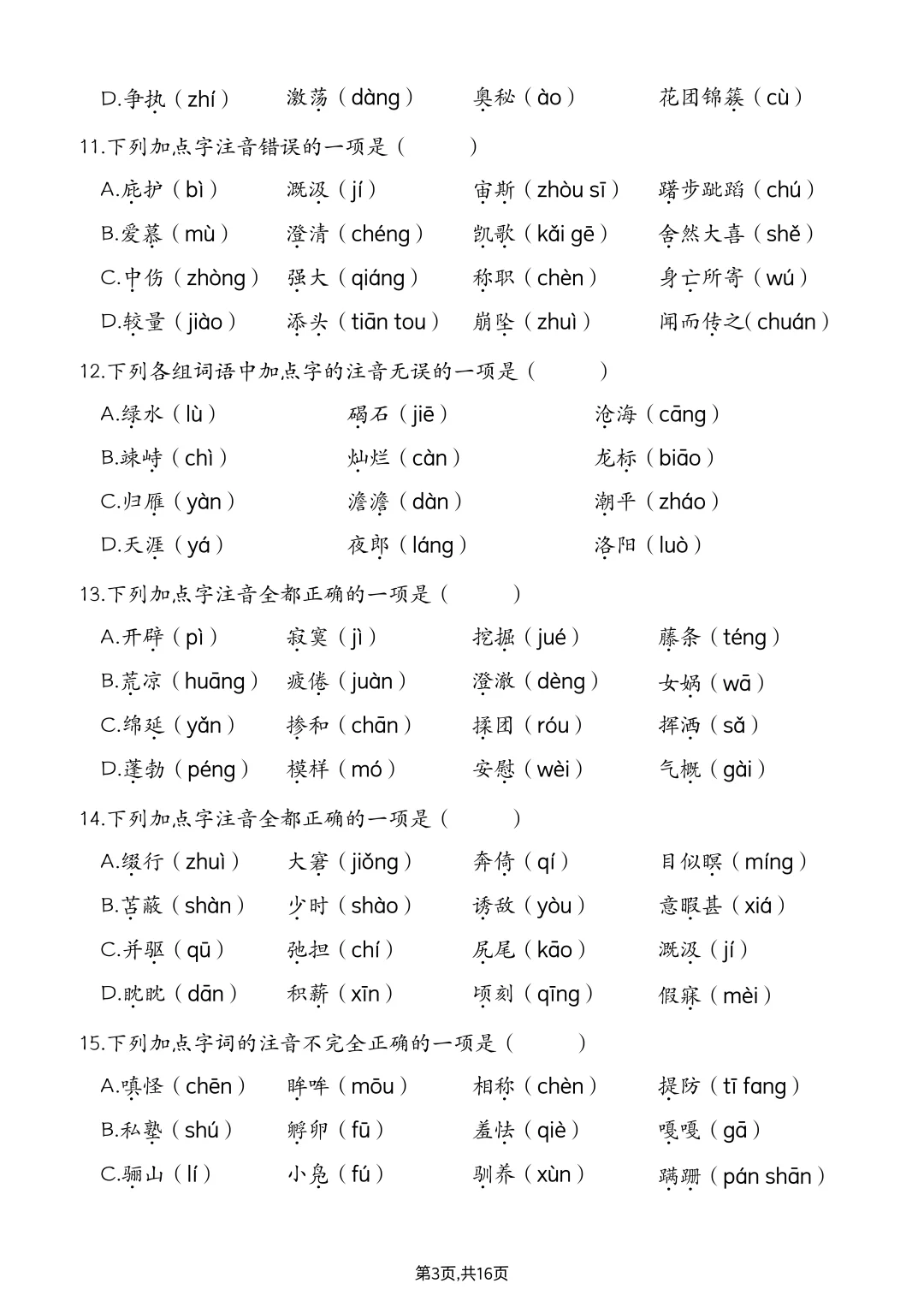 七上语文丨字音辨析专项练习(含答案解析)