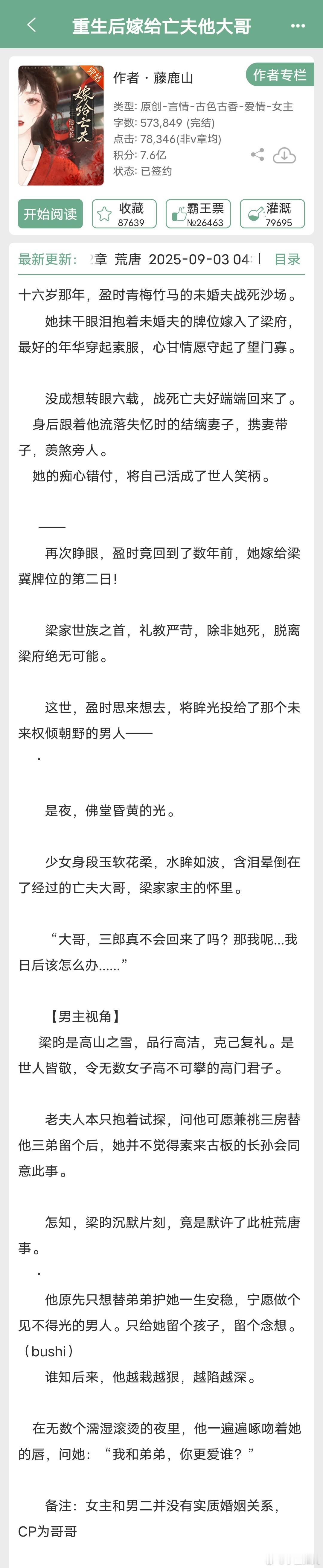 男二少年郎君,赤诚桀骜,女主十六岁时,男二战死沙场,女主抱着牌位嫁进梁家守寡。六年后,男二竟然活着回来了,还带着失忆期间娶的妻子孩子。女主痴心错付,成为大家口中的笑柄,想要和离却遭到男二反对。最后郁郁寡欢,没两年就病逝了。