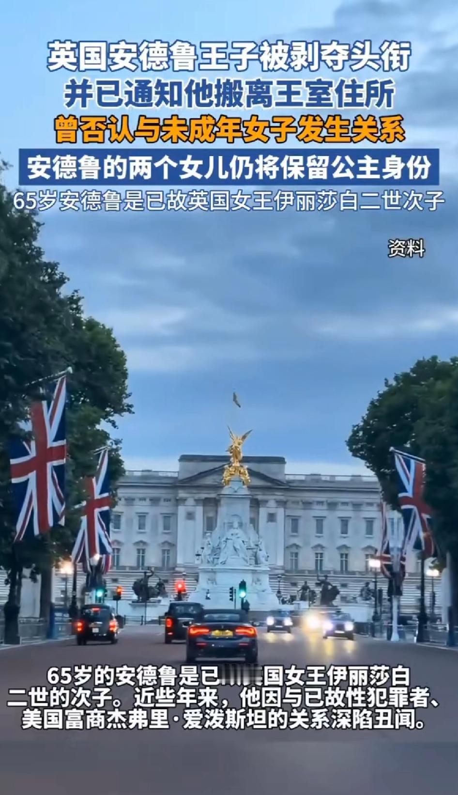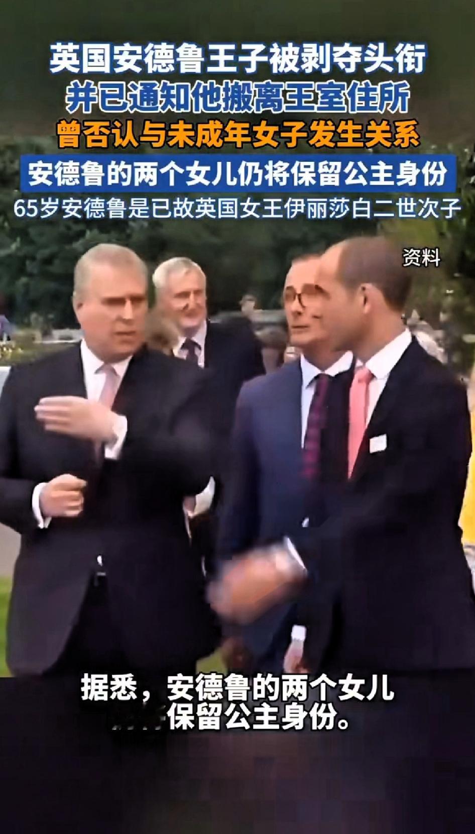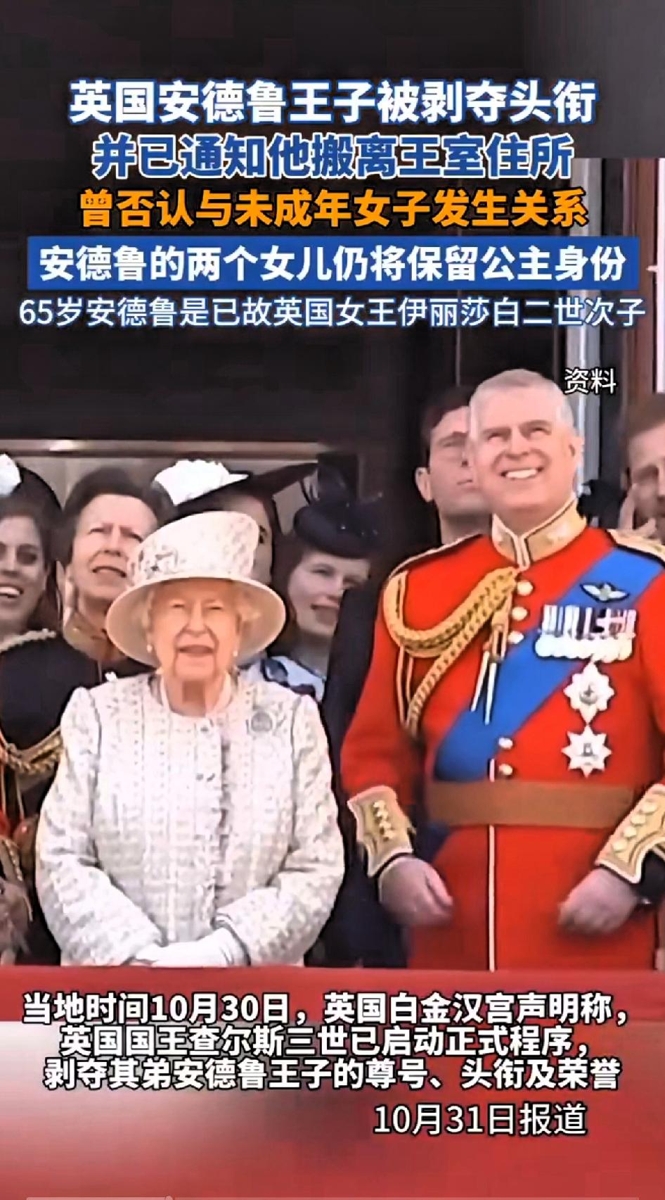 英国安德鲁王子被剥削头衔,并通知他搬离王室住所。他曾否认与未成年女子发生关系。 英国王室又出大瓜!当地时间10月30日,白金汉宫声明,查尔斯三世启动程序剥夺弟弟安德鲁王子的尊号、头衔及荣誉,还让他搬离王室住所,以后就叫“安德鲁·蒙巴顿 - 温莎”了。 65岁的安德鲁是伊丽莎白二世次子,这些年和性犯罪者爱泼斯坦的关系让他丑闻不断。 他虽一直否认在爱泼斯坦豪宅与未成年女子有染,还说2010年就和爱泼斯坦断了联系,但近期邮件显示2011年他俩还有私下往来。 否认 不代表没做过,受害者出书详细交代了发生的细节,安德鲁和受害者发生关系是对方还未成年。 之所以被剥削头衔实在是瞒不住了吧!受害者已经自杀了,这种事情已经明确了。 如果没做过王室怎么可能接受无端的污蔑。 此前他就同意放弃约克公爵头衔,这次算是彻底被“降格”。 不过他女儿还保留公主身份。