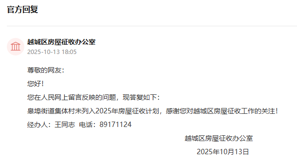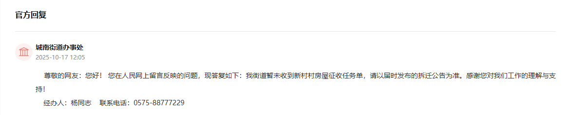 问:尊敬的领导您好,现阶段绍兴市越城区城南街道新村村拆迁的最新进展?