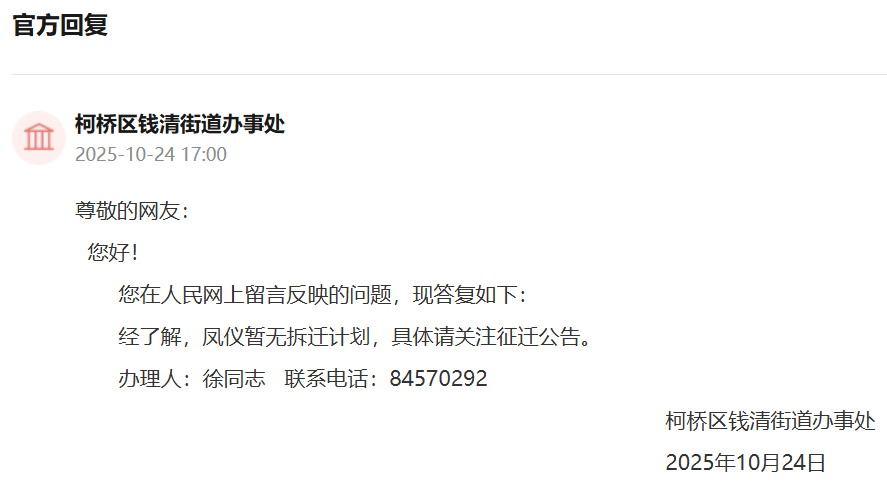 问:问一下柯桥钱清街道凤仪村还拆吗?不拆或者很久之后拆麻烦告知,在纠结要不要装修了