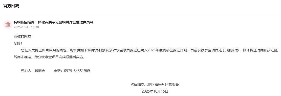 问:请问柯桥区钱清街道顾家荡村2025年是否会按计划进行拆迁?是否有变动或者调整?