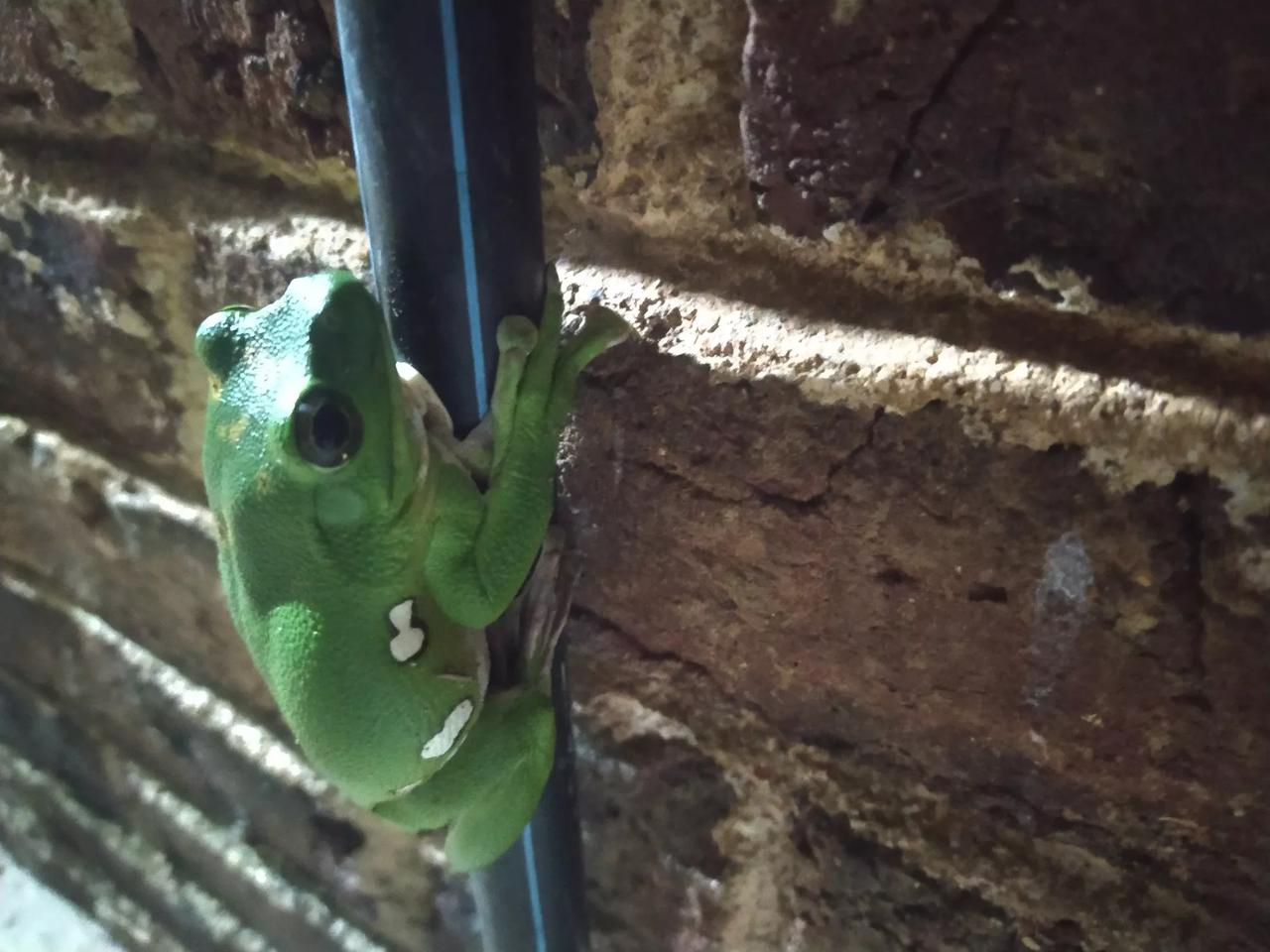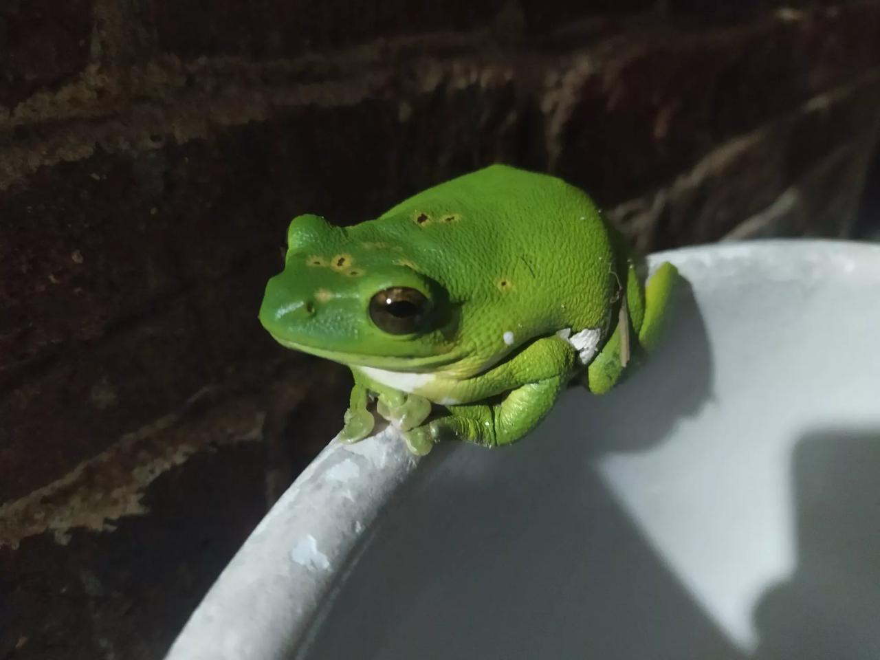 有谁认识这是什么品种的树蛙么[笑],看着像老爷树蛙,但不确定,它真的特别萌,有一双圆溜溜的大眼睛,但是眼白有点少的可怜,永远一幅我看透一切,但我懒得说的拽盟表情,它还有一身翠绿的抹茶波点潮服,无论往哪一趴,都是蛙界最亮的仔,另外它还自带壁虎吸盘,无论是光溜溜的玻璃窗,还是垂直的墙壁,它都能将自己牢牢的焊在上面 它从小就生活在我的院子里,但我从来没见过它的蛙爸蛙妈,它就像是凭空出现的,它小的时候胆子有点小,只喜欢趴在院子的树枝上,后来慢慢的跟我混熟了,哪里都能成为它的落脚点 有时是在桶檐上,有时在水管上,有时趴在窗户玻璃上,好奇地打量着屋内的动静,甚至有一次它还趴到了我的电脑桌上,我打开电脑剪辑视频,以为它肯定会受惊蹦走,谁能想到,它愣是淡定的全程蚊丝不动,毫无保留的信任我,它静静看我剪视频,偶尔会像慢镜头一样眨巴一下眼皮,仿佛陪我剪视频是一件很困的事情 直到两小时后,视频剪完,它还没有要走的打算,最后要睡觉了,不得不手动把它捧回了院子,要不我都怀疑,它能在我房间趴一晚 它用它的淡定与依赖告诉我,哪怕是不同物种,善意也从来都不是单向的付出,而是双向的感知,它不懂得复杂的人情世故,却用最本能的反应,诠释了信任的真谛