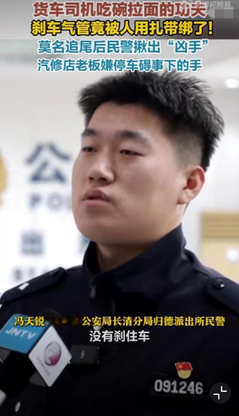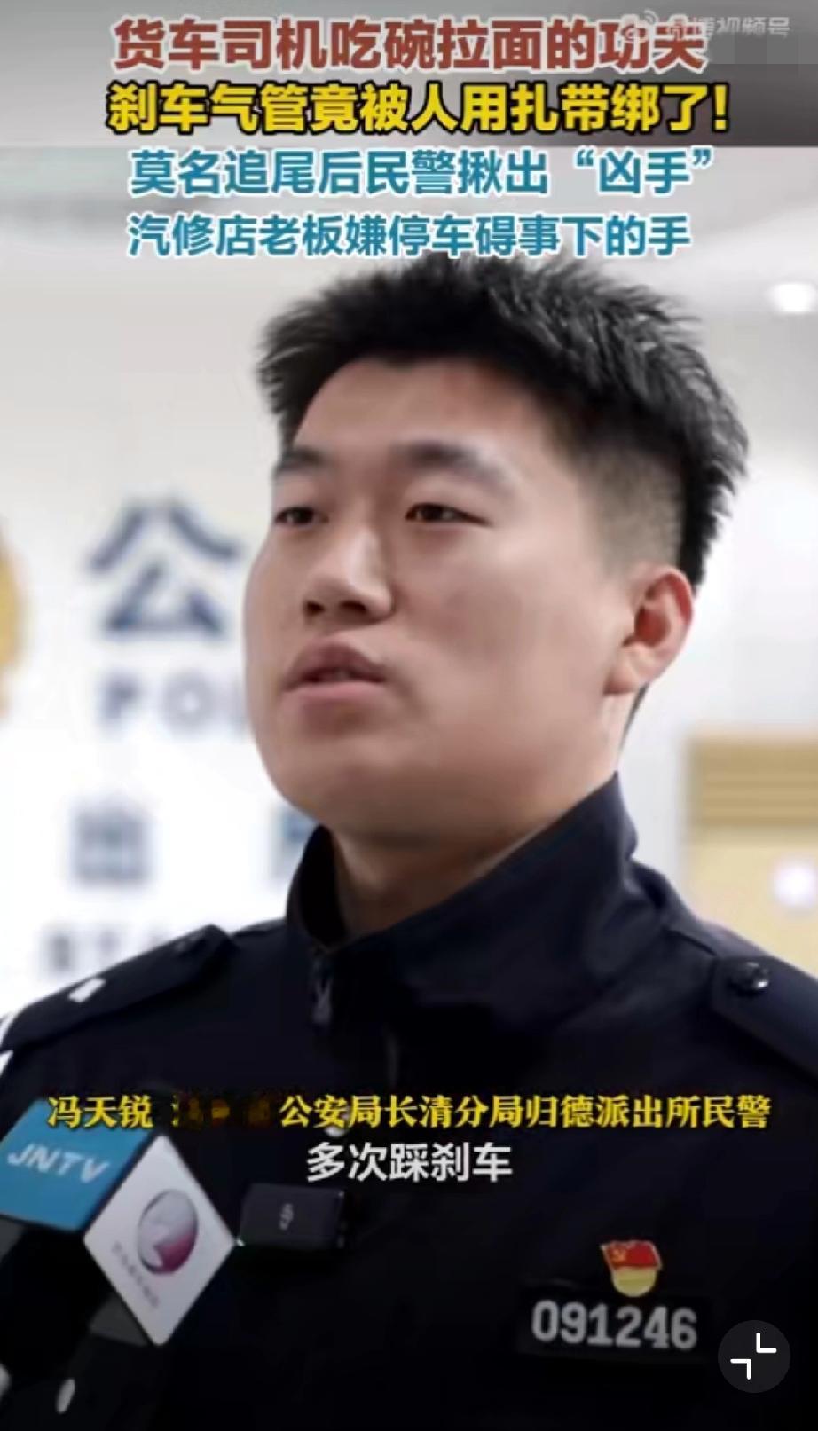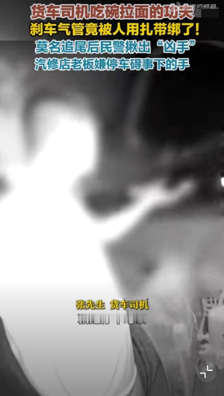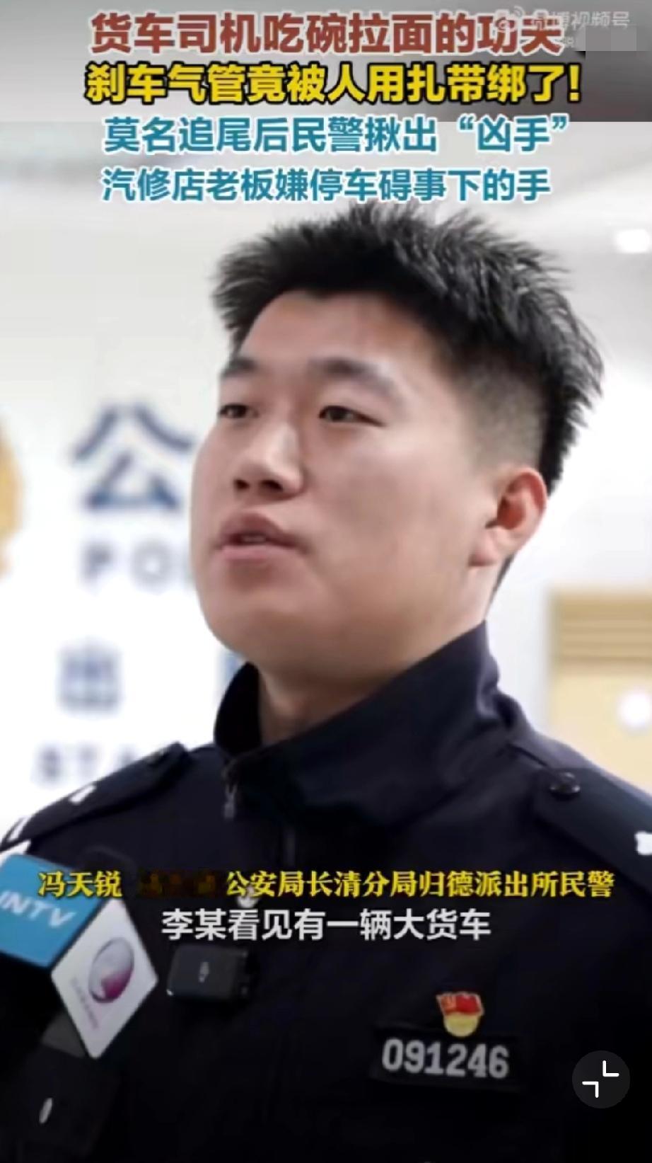 因嫌挡了生意汽修店老板将大货车刹车破坏酿成事故。近日济南货车司机吃碗拉面的功夫刹车气管竟被人用扎带绑了!莫名追尾后民警揪出“凶手”汽修店老板嫌停车碍事下的手。(来源:山东电视新闻频道)。目前汽修店老板被以破坏交通工具罪刑事拘留。货车交通事故 大货车事故 山东交通事故