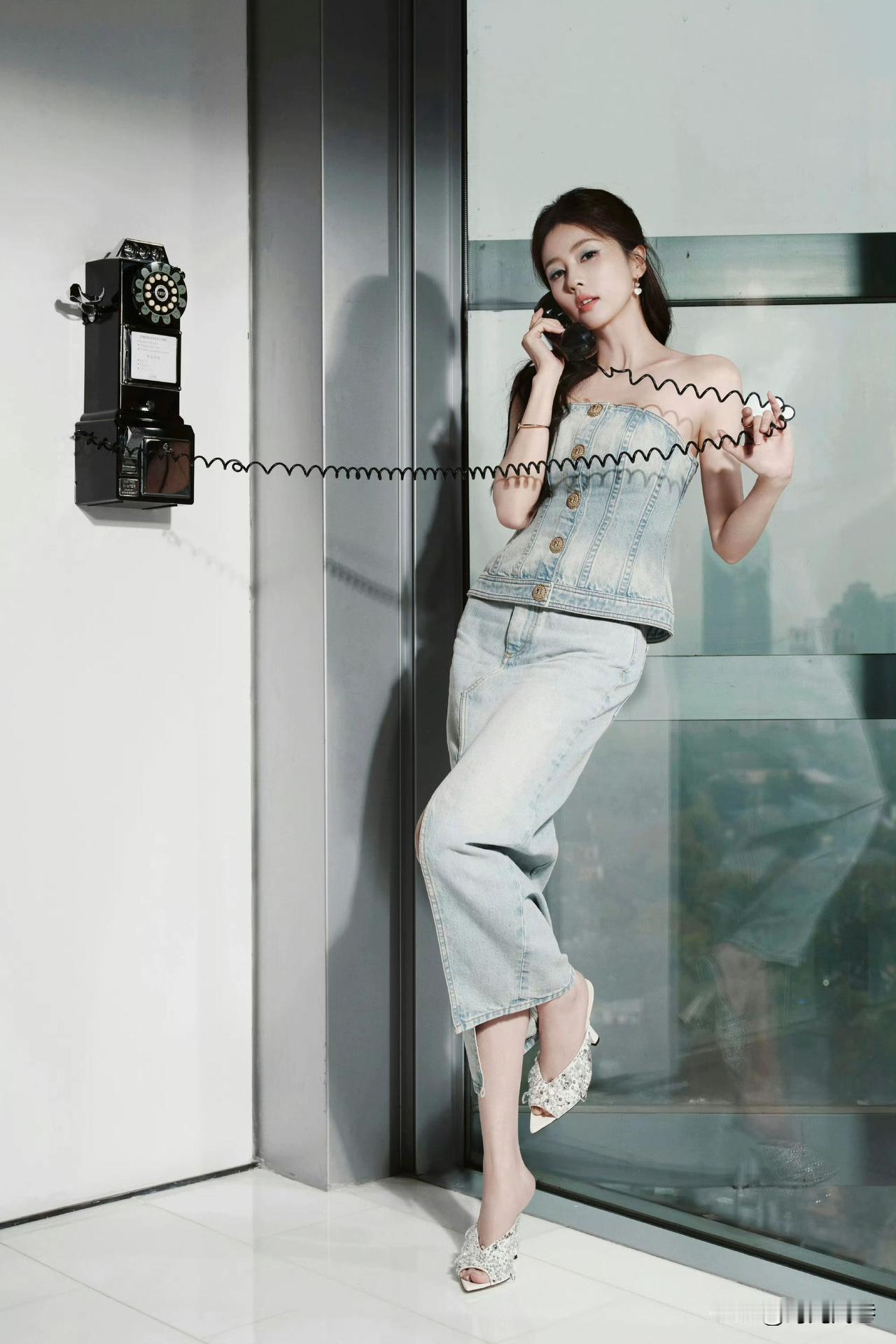 白鹿牛仔上衣搭配牛仔长裙穿出精致时尚美感!优雅迷人的气质自然散发!