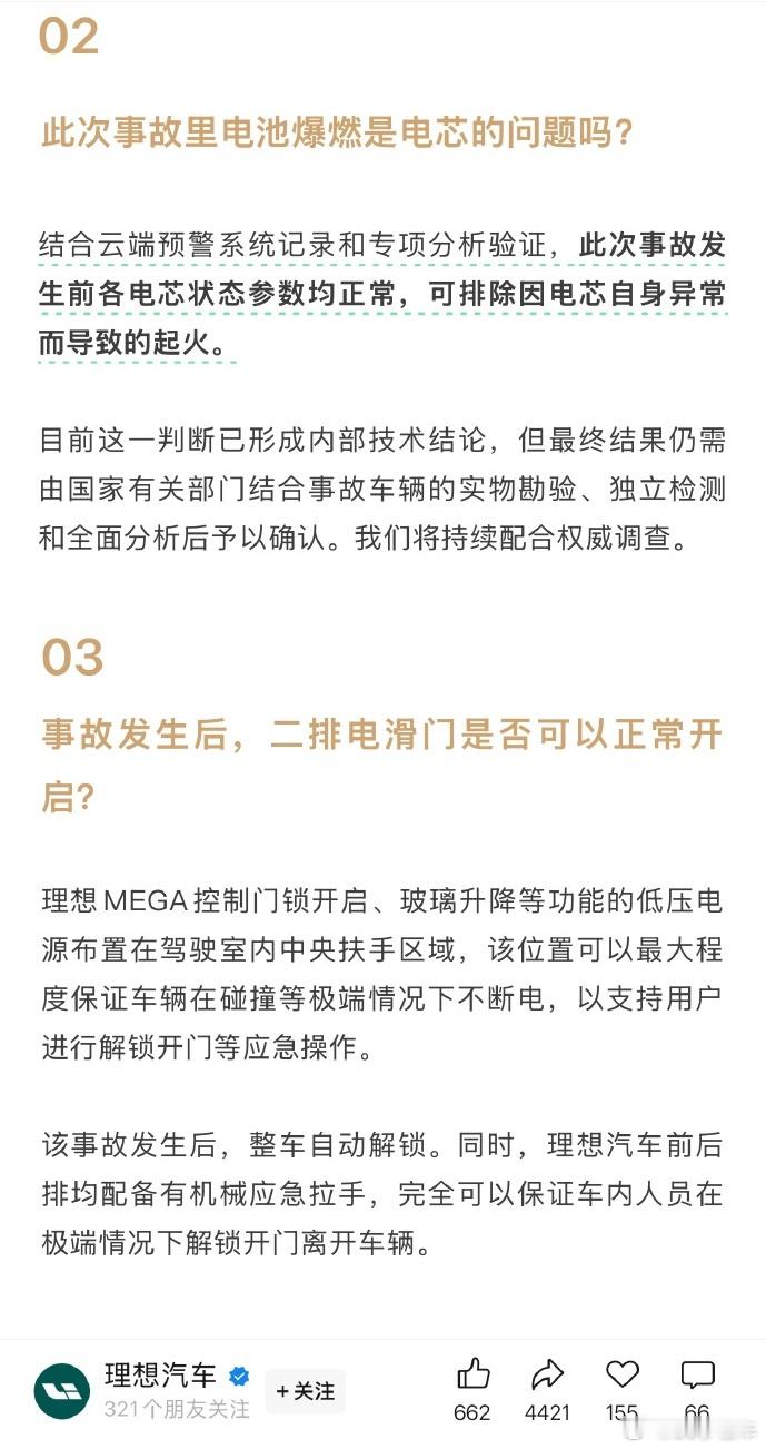 【原因公布!理想汽车回应上海MEGA起火事件将为召回车辆更换电池】快科技10月