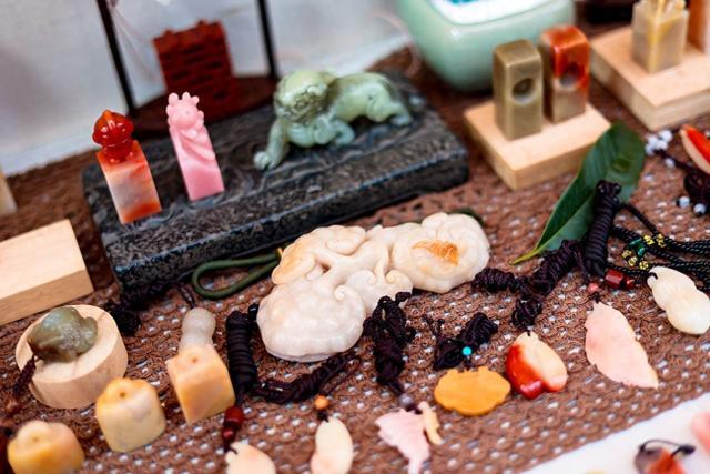 活动现场展出的青田石雕手工艺品。浙江省非物质文化遗产馆供图