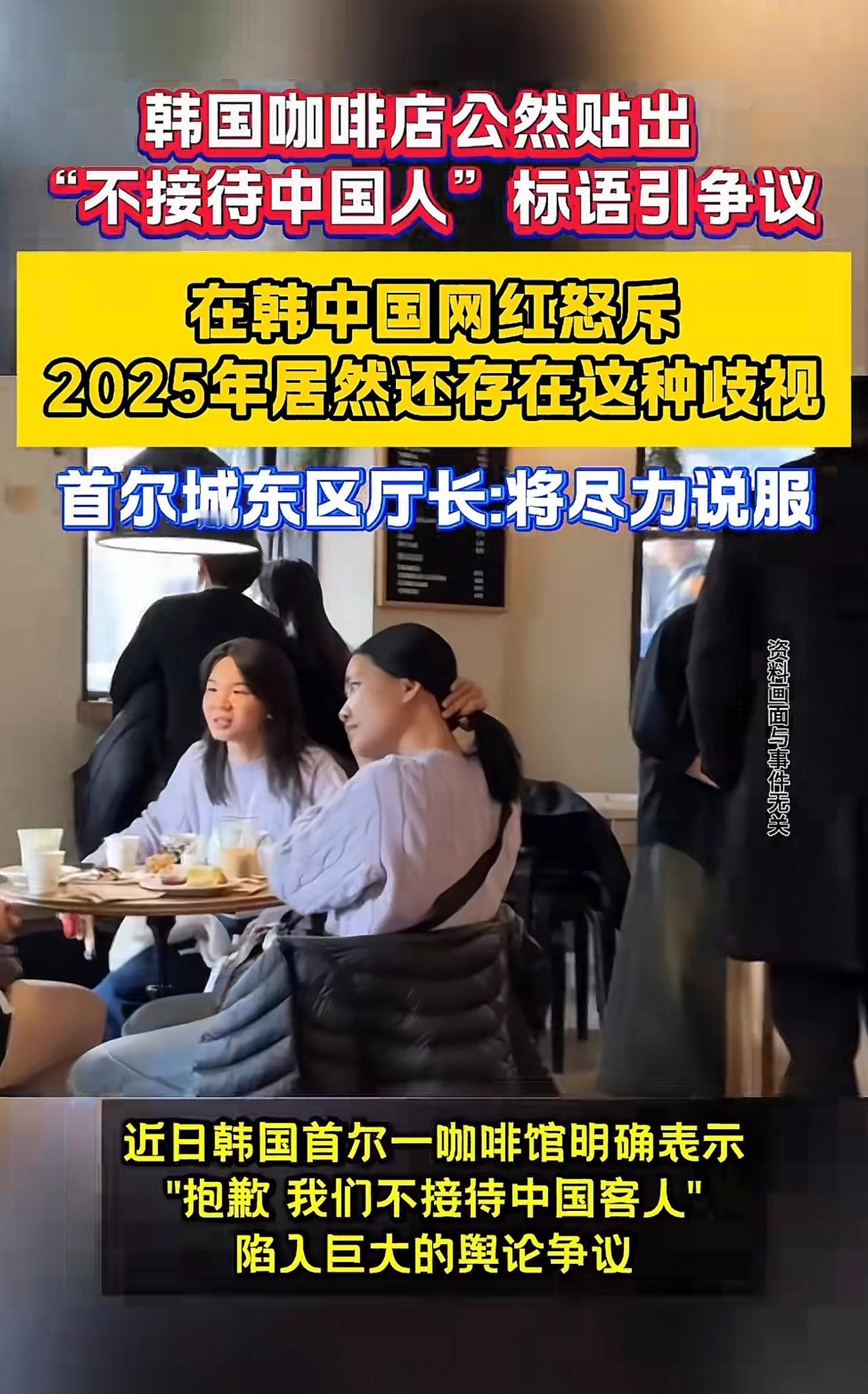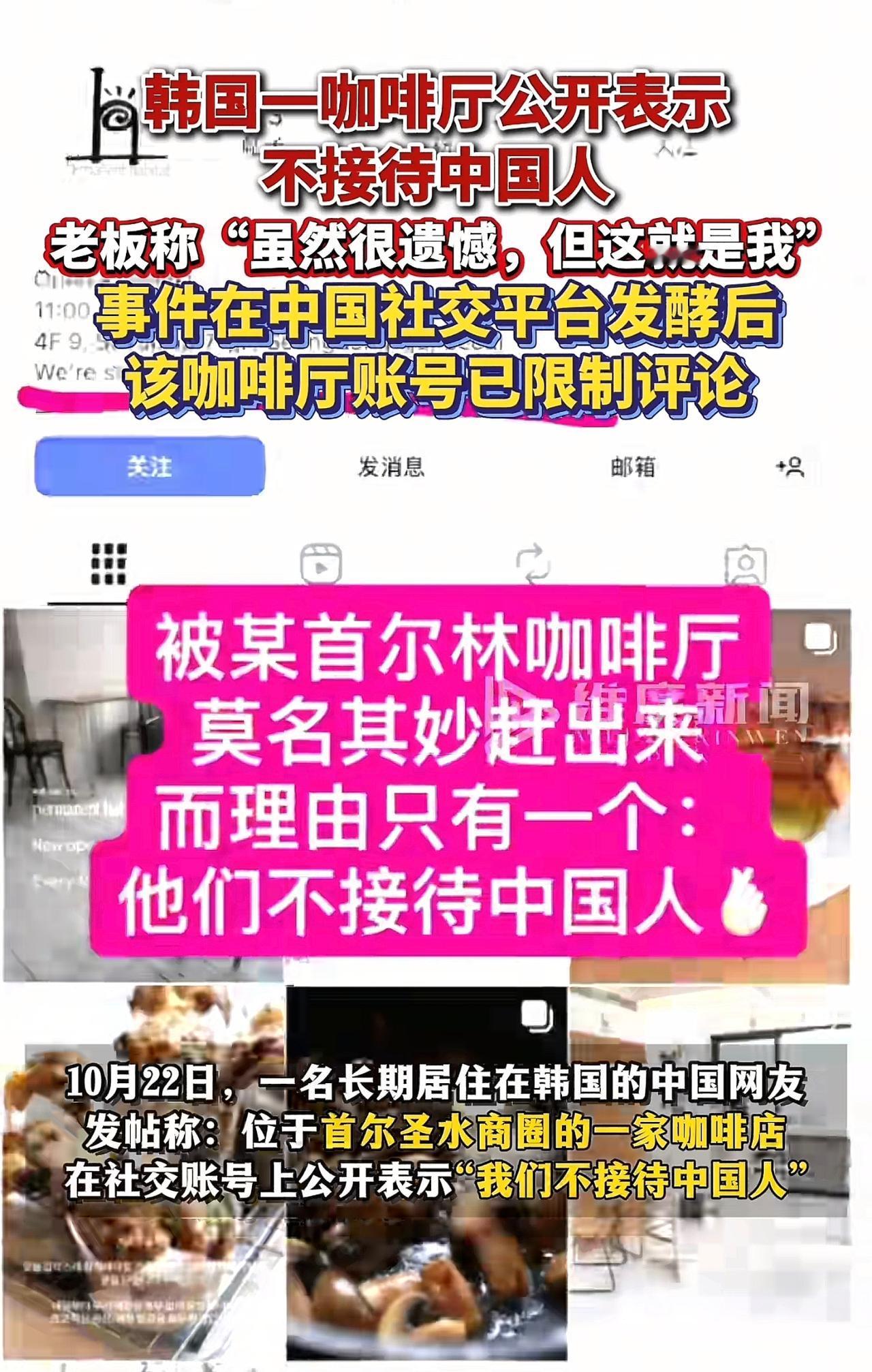 “不接待中国人”,这就是韩国这家名为“永恒栖息地”的咖啡店对待中国人的态度,位于首尔城东区圣水洞。 虽然不了解到底是对中国人的歧视,还是如这家店老板所说“中国人经常去厨房拍摄”,但都不应该张贴出来,而且即使韩国政府出面协调,也只是把张贴告示撤了,公众号依然还是这个态度。 所以那些去韩国游玩的,别再自讨没趣,既然不招待见,能不去就别去了。首尔打卡点 首尔星巴克