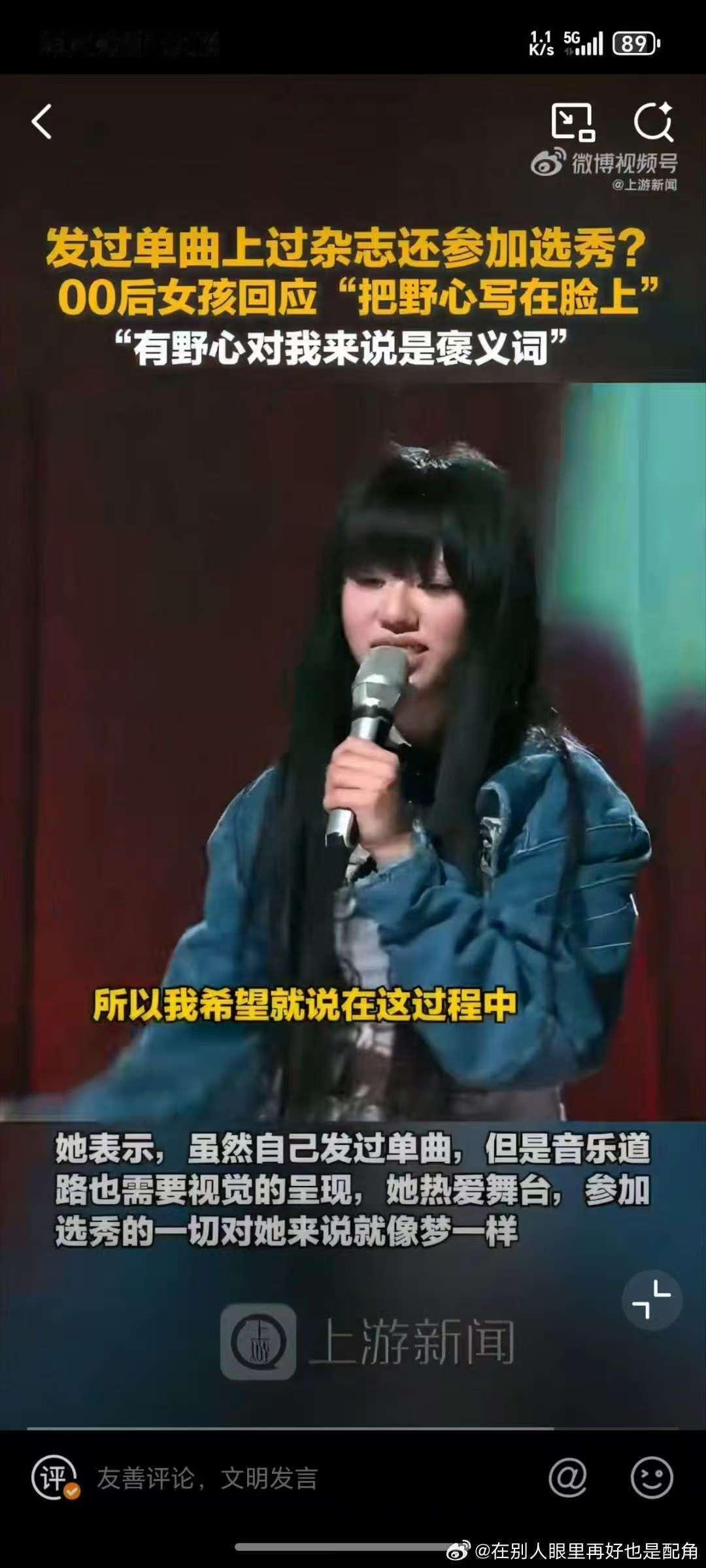 00后女孩回应出过单曲还参加选秀00后选秀女孩认为野心是褒义词00 后太会说了!