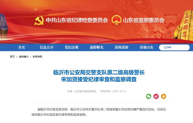 据临沂市纪委监委消息:临沂市公安局交警支队原二级高级警长宋加贤涉嫌严重违纪违法,目前正接受临沂市纪委监委纪律审查和监察调查。