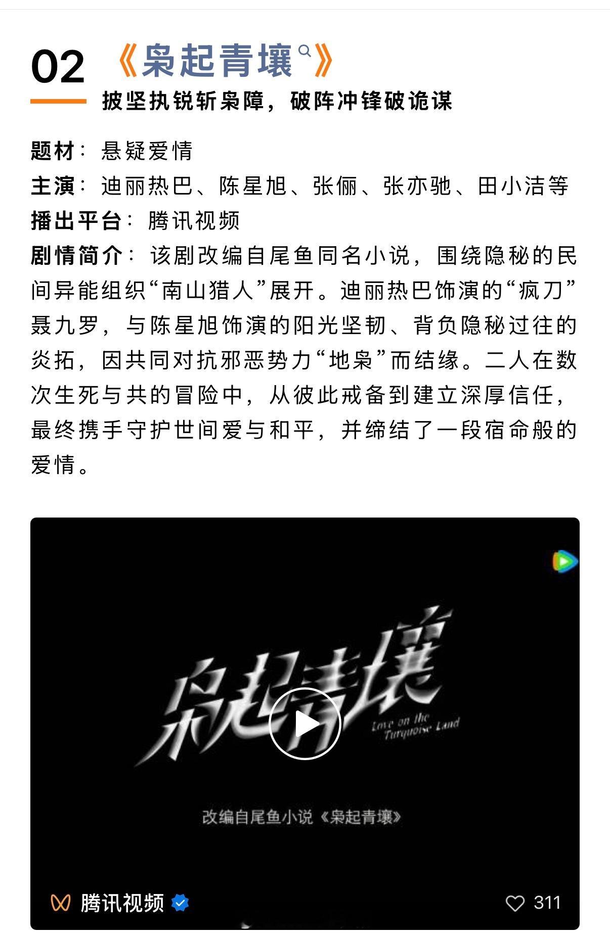 迪丽热巴、陈星旭《枭起青壤》开启双招商,预计11月播出