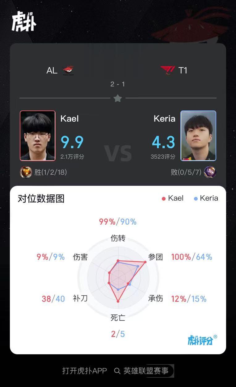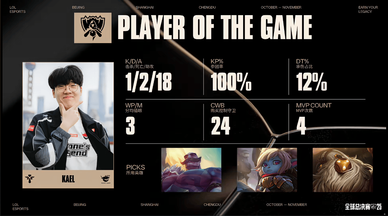 Kael巴德打出1/2/18战绩,斩获AL对阵T1第三局MVP