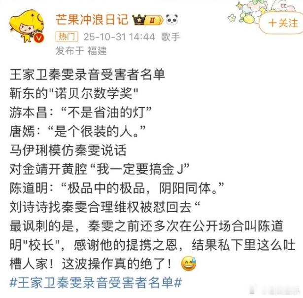 不管因为什么原因,聊天内容被曝光了,就算王家卫只是嘴碎,没有违法乱纪,但场面还是相当尴尬,一段录音,得罪了好多人,有点得罪半个娱乐圈的感觉。虽然以王家卫的资历资源和现在的工作节奏,也不需要怕得罪人,以后也不见得还拍多少作品,也不愁没演员愿意合作,但总归不是什么好事。王家卫疑似对金靖开黄腔