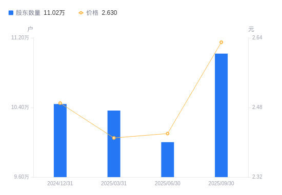 近一年(2024年9月30日至2025年9月30日),太原重工A股股东户数从10.59万户,增加至11.02万户,增幅4.07%,区间股价上涨27.67%。