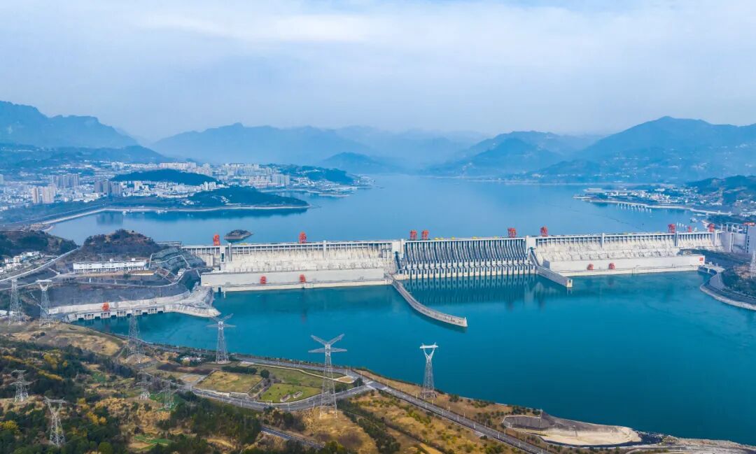 乌东德、白鹤滩、溪洛渡、向家坝、三峡、葛洲坝6座梯级水电站沿长江干流自上而下排列构成了世界最大清洁能源走廊,图为三峡大坝和外送输电线路新华社发(郑家裕摄)
