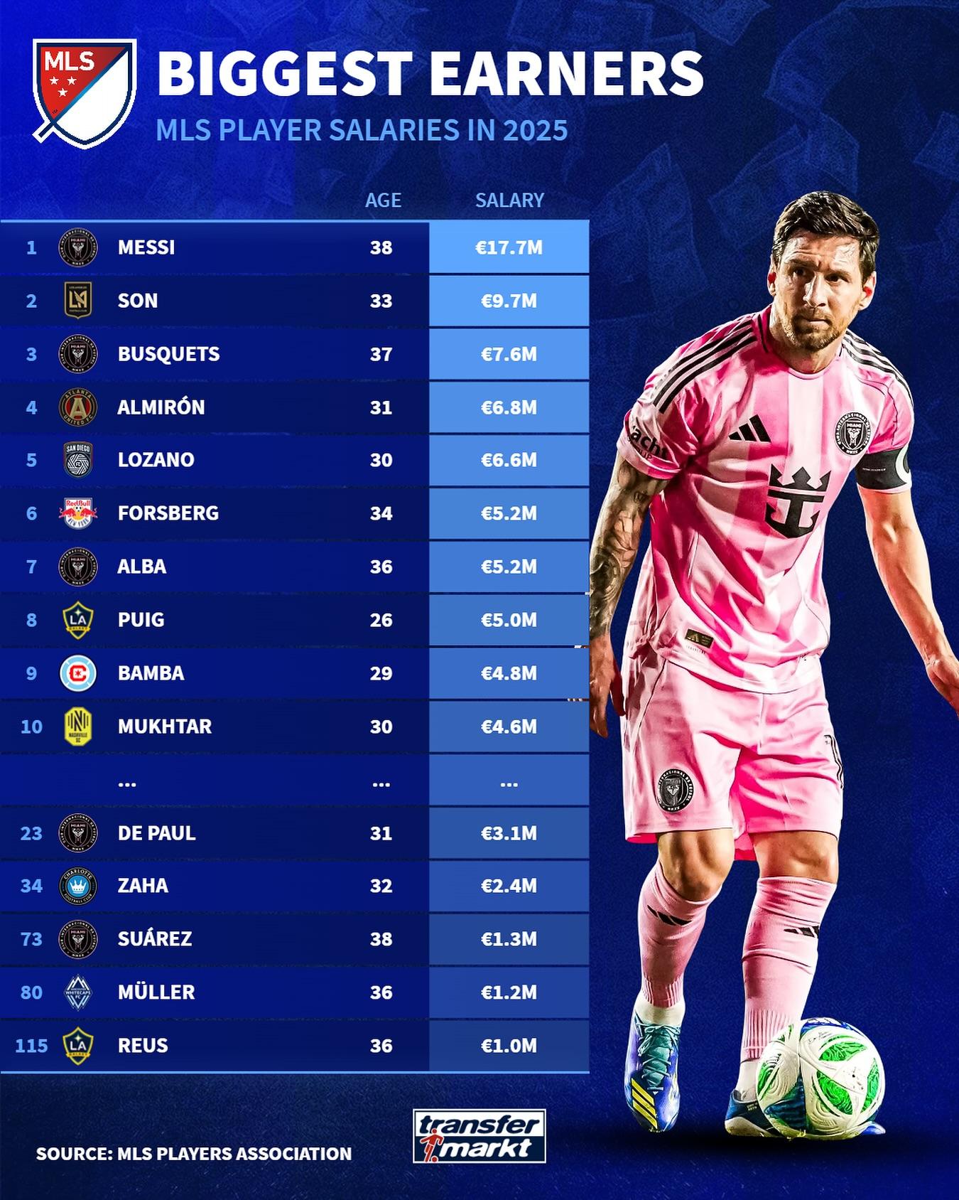 虎扑10月31日讯德国转会市场统计了美职联球星的薪资情况,详情如下: