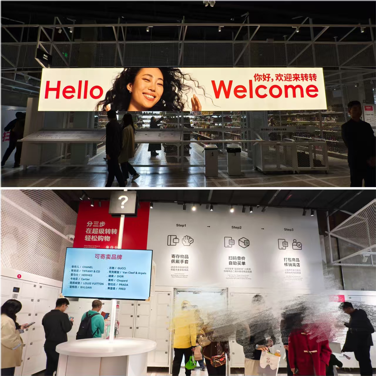 线下门店最重要的目的在于搭建“看得见的信任”。黄炜解释布局线下时表示,“我们想通过商场门店向消费者证明二手也能有规范体验。”转转1000余家线下门店承担“到店消费和即时回收”的双向服务,避免邮寄回收的“估价争议”。门店包裹存放处的电子屏滚动提示可寄卖商品,涵盖上百个奢侈品品牌。