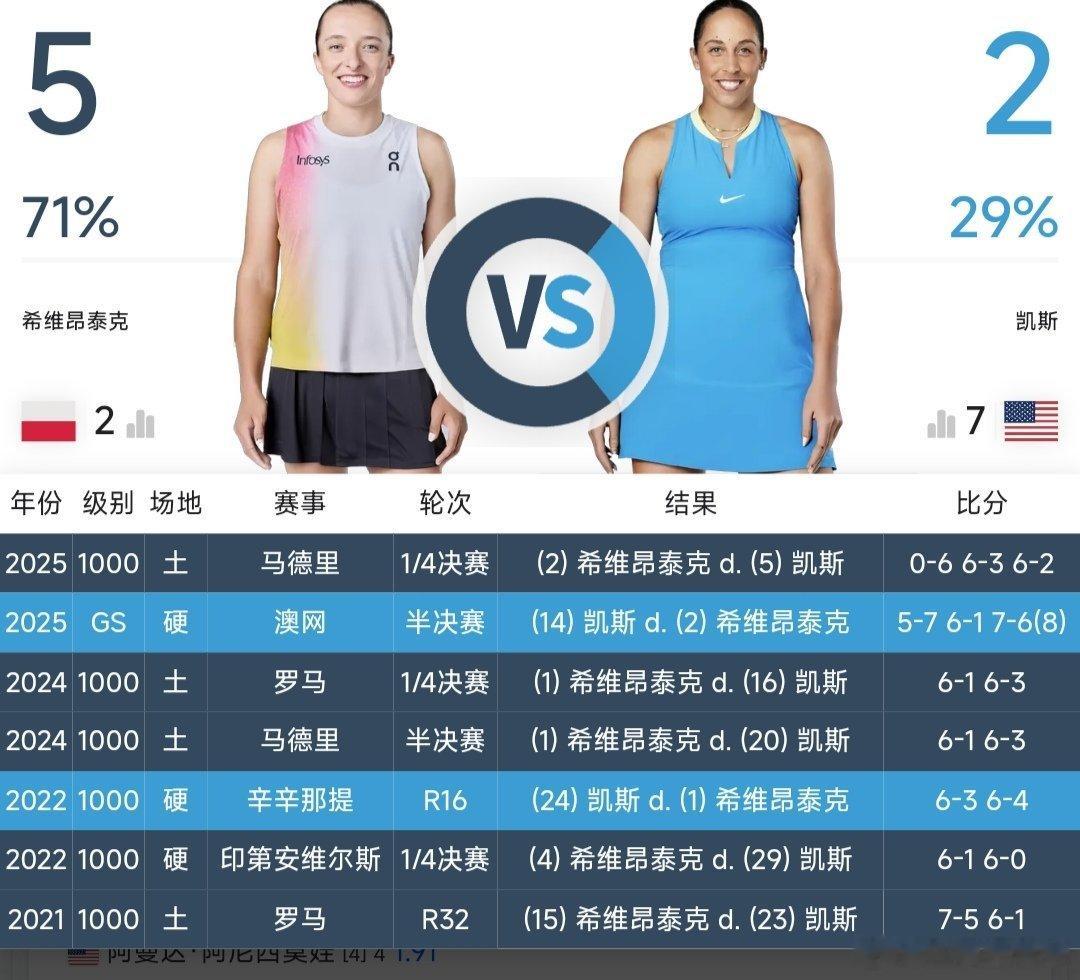斯瓦泰克🇵🇱vs凯斯🇺🇸