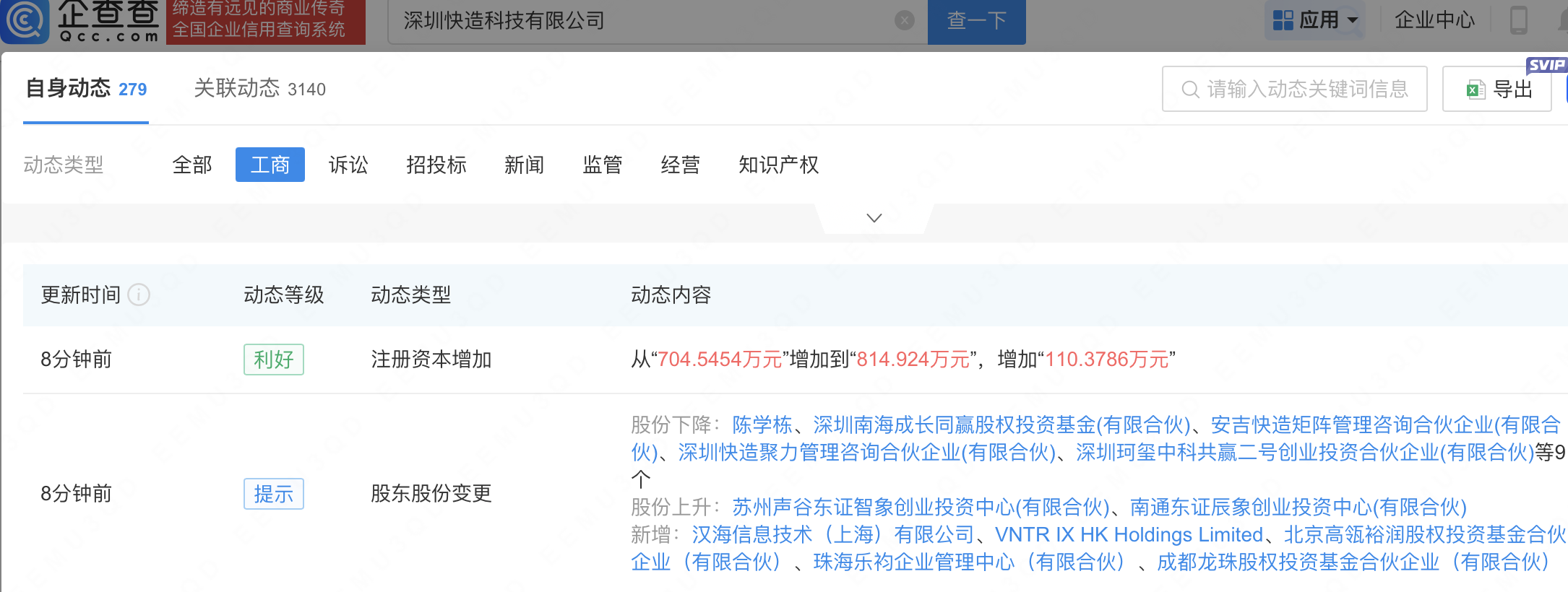企查查APP显示,近日,深圳快造科技有限公司发生工商变更,新增美团关联公司汉海信息技术(上海)有限公司、成都龙珠股权投资基金合伙企业(有限合伙)等为股东,同时注册资本增至814.92万元。企查查信息显示,该公司成立于2016年,法定代表人为陈学栋,经营范围包含:机器人、自动化设备、机电产品、电子产品、电源产品、塑料制品、金属制品、计算机软硬件和检测设备的研发等。公开信息显示,快造科技是一家集研发、生产和销售桌面级多功能3D打印机公司。