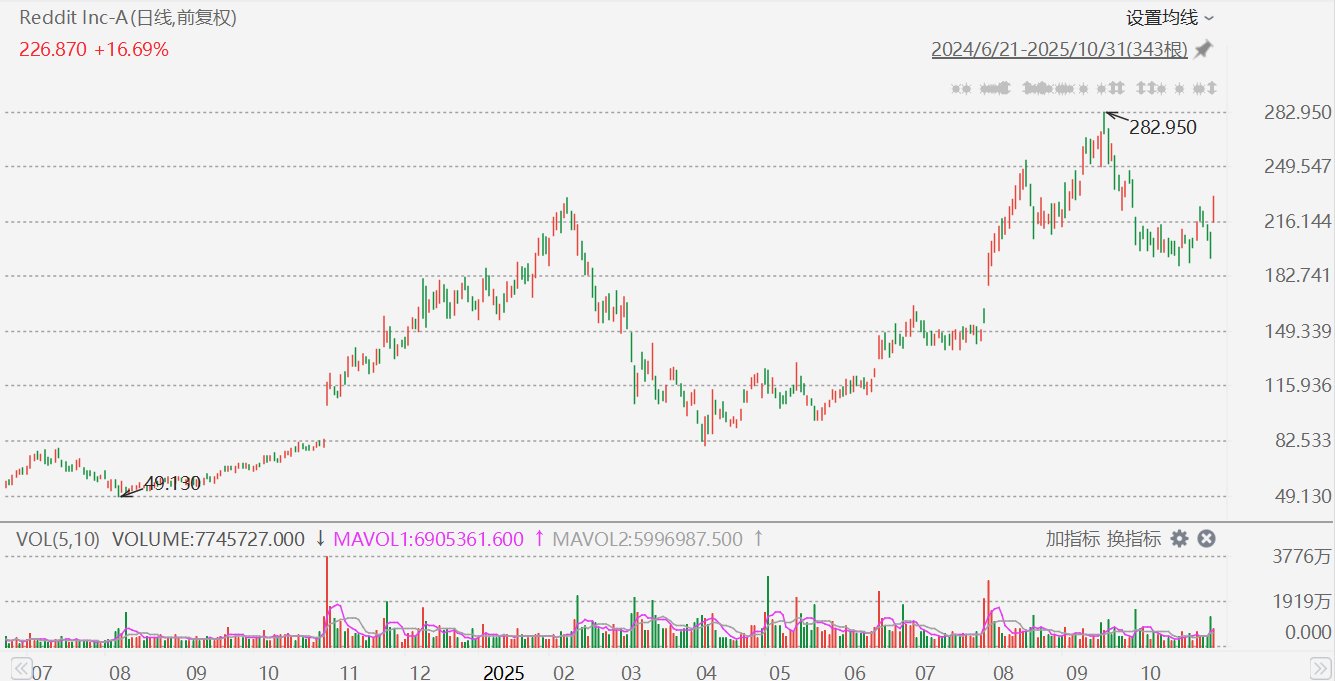格隆汇10月31日|Reddit(RDDT.US)大涨近19%,报230.92美元。消息面上,公司周四公布的第三季度财报远超所有预期。营收同比增长68%至5.85亿美元,每股收益达0.8美元,远超0.51美元的目标。净利润为1.63亿美元,高于去年同期的1.33亿美元,增幅达23%。