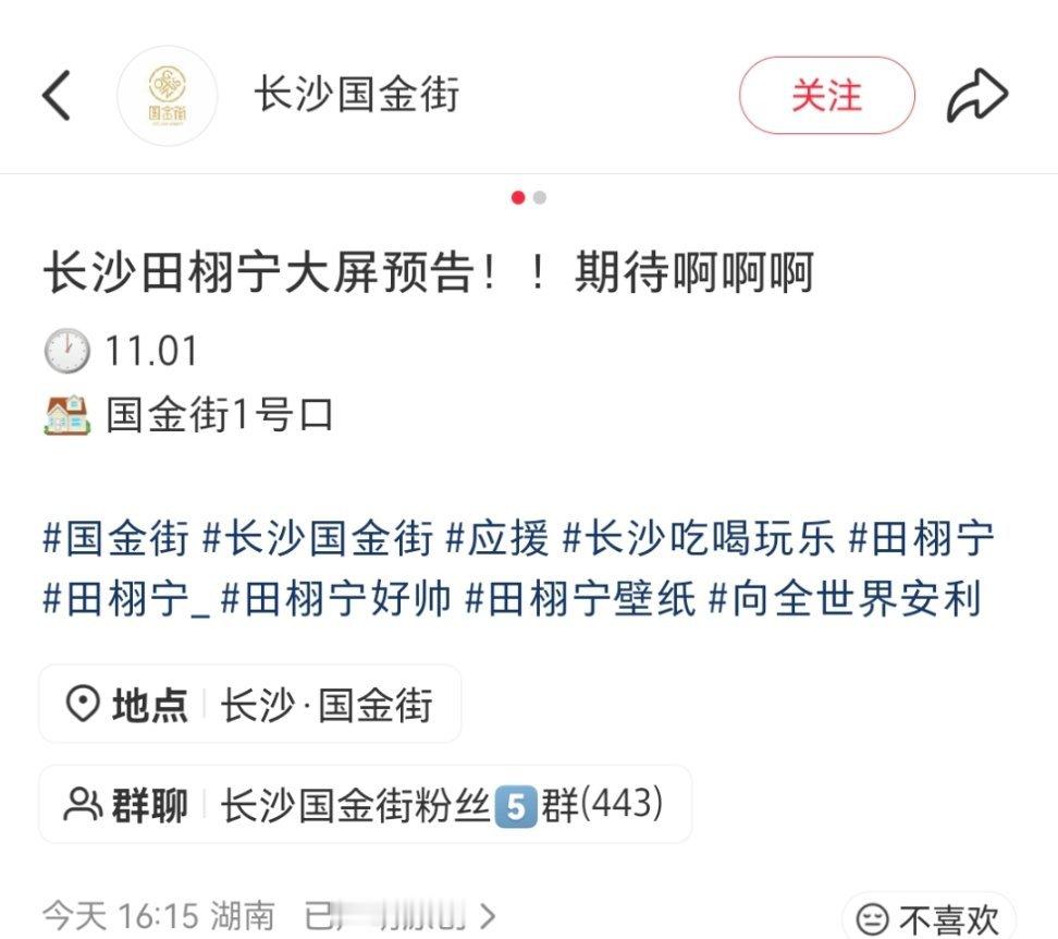 长沙国金街明天又有田栩宁大屏!时间是9:30-22:30看着跟生日应援一样但官方