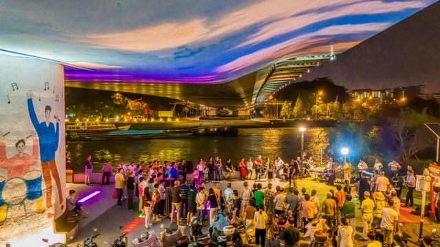 无锡市民在大运河边的桥洞下自发组织的夏夜纳凉音乐活动毛云中摄