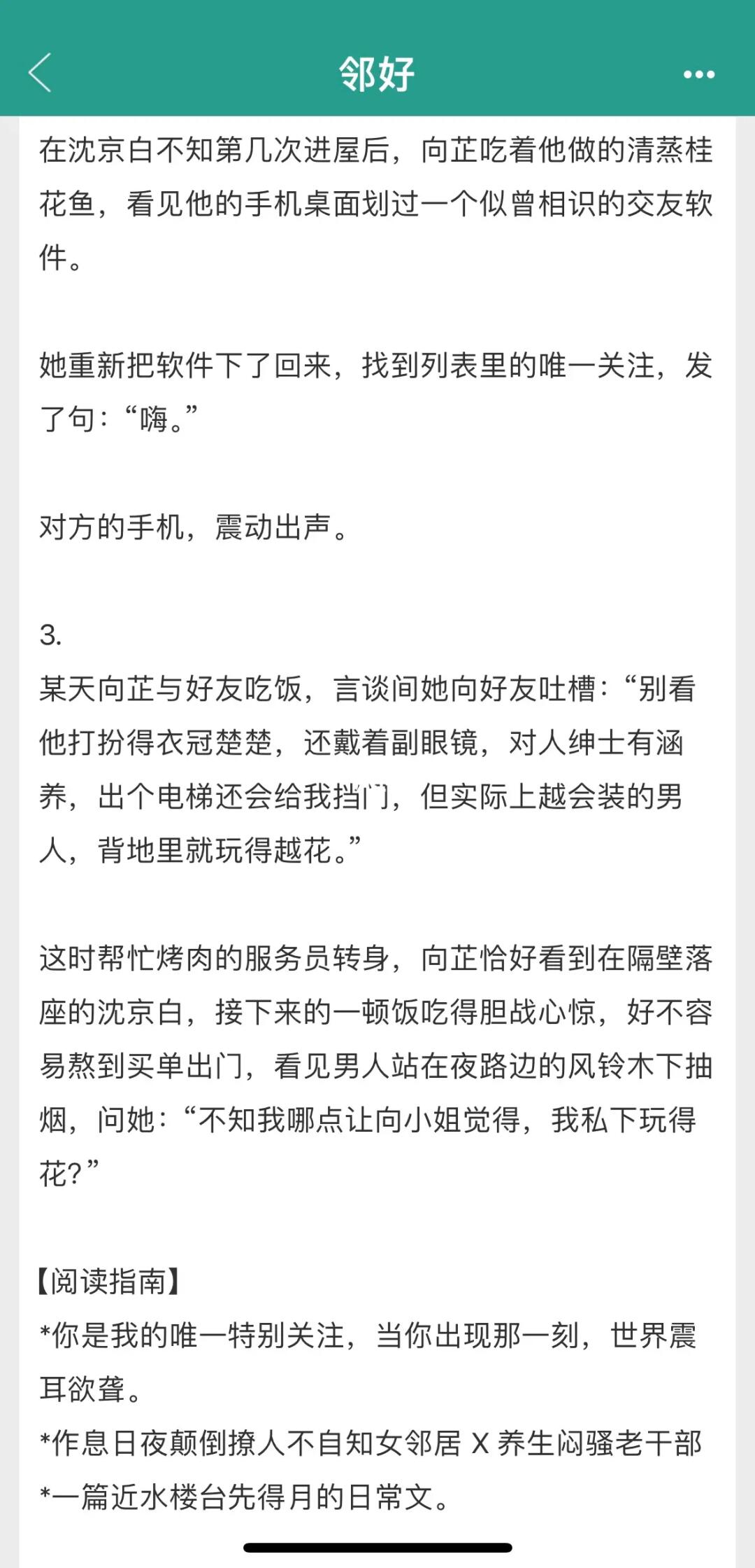 撩人不自知女邻居*闷骚男教授 真的好爱看这种男女主之间有暧昧期拉扯的文 男女主是邻居 因为收错快递女主被当成“骚扰犯” 因为是邻居,男女主的联系越来越多 女主的网坏了,男主来修 肚子饿了,男主来投喂 就连上夜班,男主都要去酒吧捞她回来 【阅读指南】 “你是我的wei一特别关注,当你出现那一刻,世界震耳欲聋。
