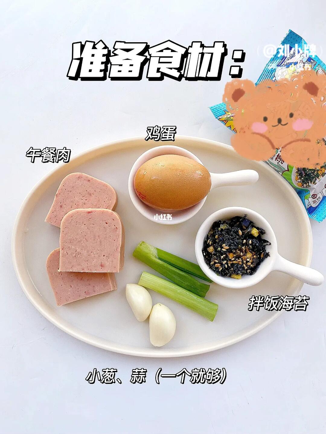 2⃣️锅热刷油煎熟鸡蛋、再煎一下午餐肉。