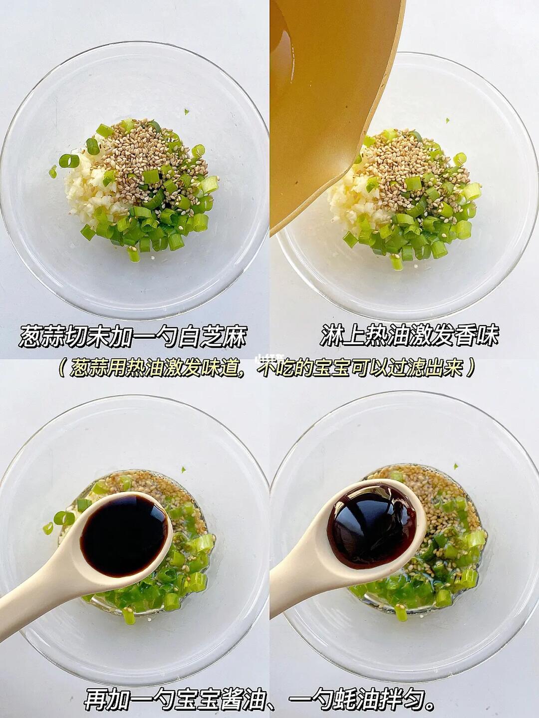 1⃣️先来准备拌饭酱汁,碗中放入葱蒜末和白芝麻,淋上热油,放入一勺酱油和一勺蚝油搅拌均匀。葱蒜是用来提味的,热油激发出香味后可以挑出来。