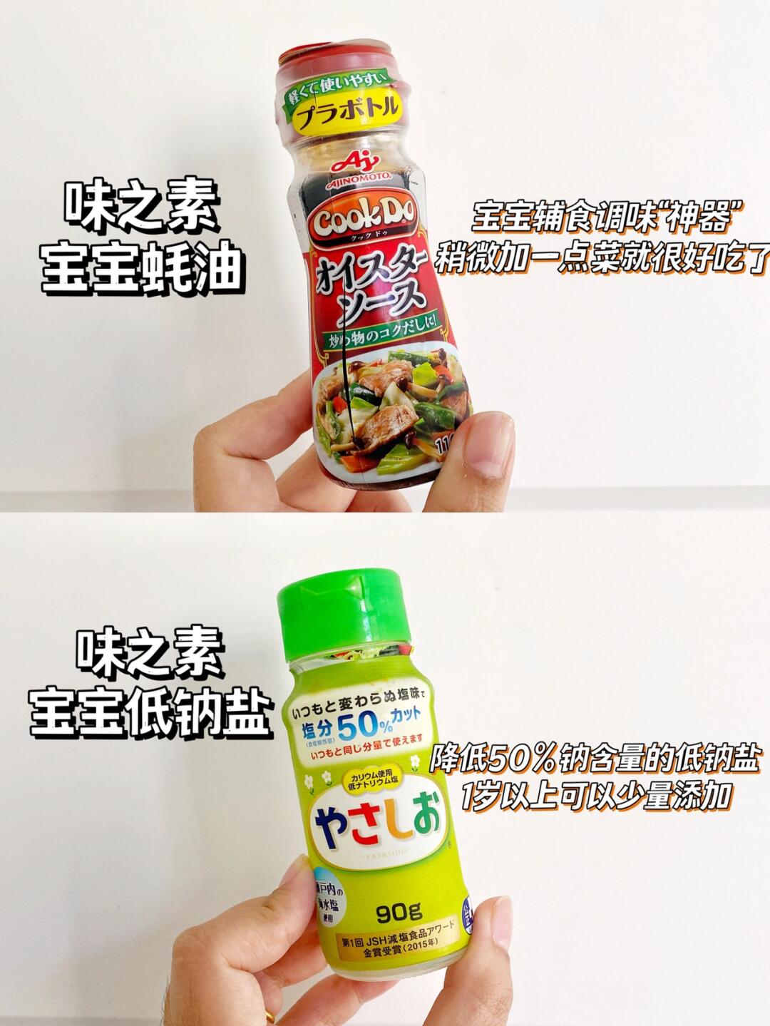 👧🏻我们家赞赞大概是12个月开始加了番茄酱、黑芝麻酱、15个月加了酱油、拌饭料。因为两岁前辅食一直吃的不错,所以两岁才开始添加低钠盐、蚝油等其他的调味料。