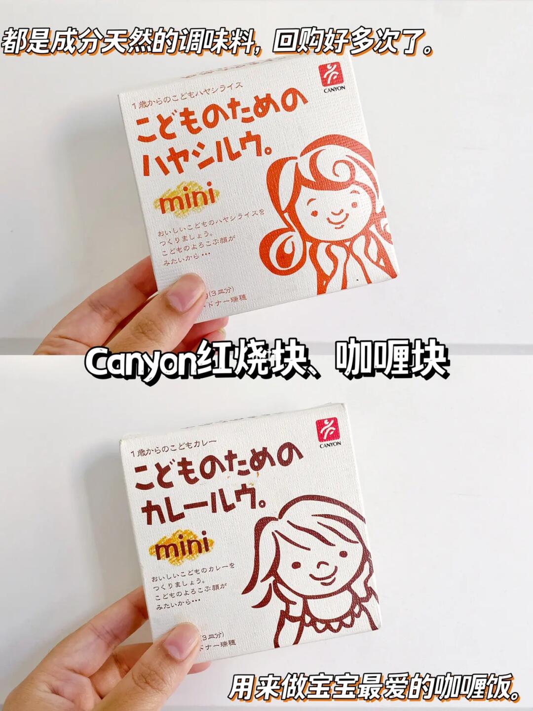 ✅canyon红烧块、咖喱块:两款原料都是多种蔬菜提炼出来的,不会做饭的妈妈就用它。