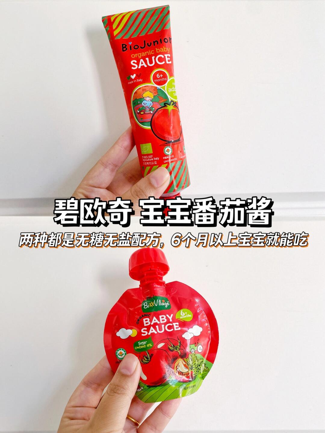 ✅碧欧奇宝宝番茄酱:配料简单不含糖,吃起来就是番茄本身的酸酸甜甜味道。都是无盐无糖配方。