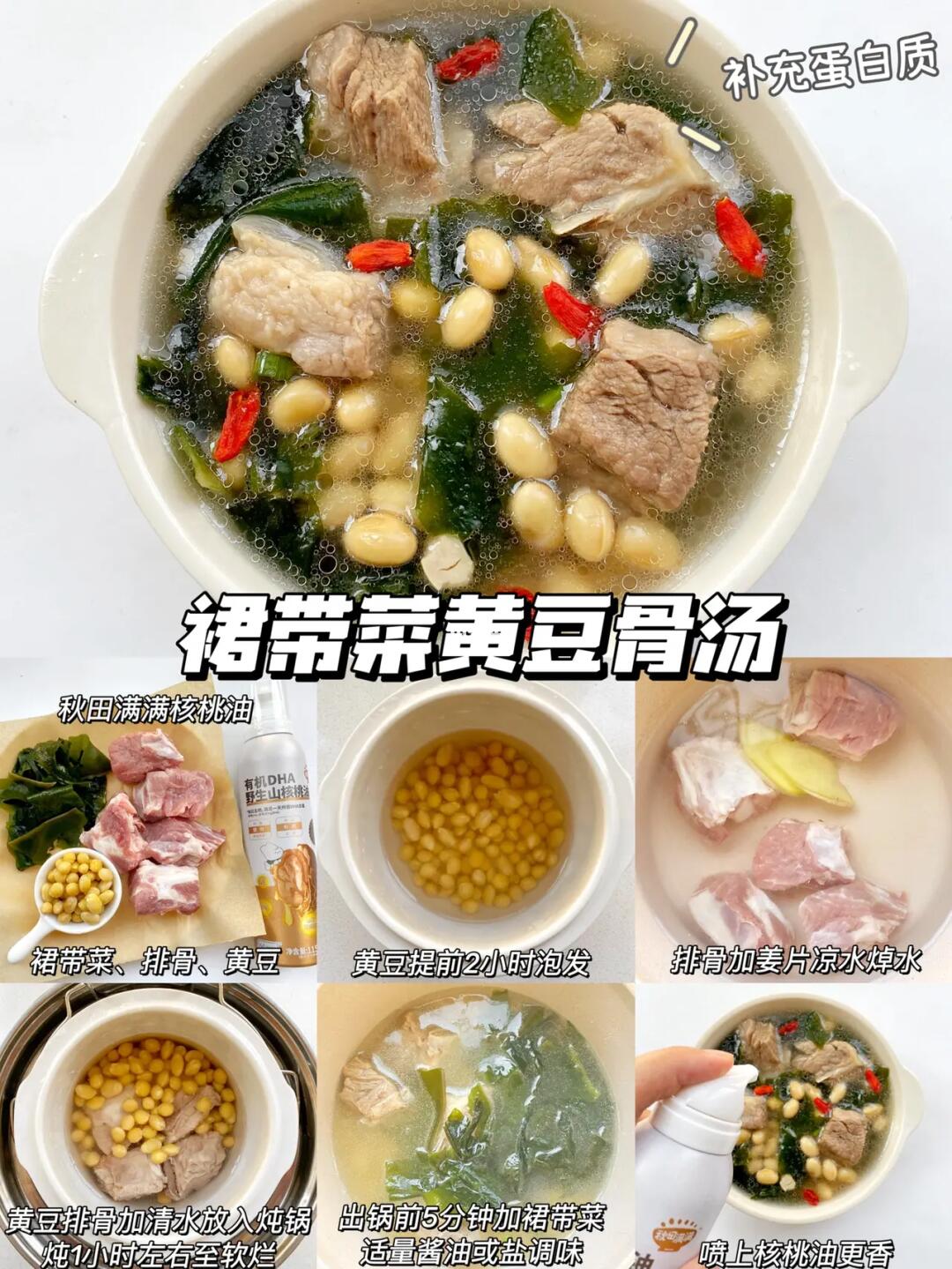 ▪️食材:裙带菜、排骨、黄豆、秋田满满核桃油