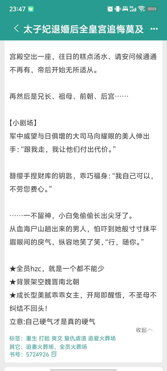 《太子妃退婚后全皇宫追悔莫及》by晏闲 23年完结的文,一共170章 冷静洒脱大美人vs霸道护短国舅爷 重生,复仇虐渣,全员火葬场 大女主苏爽向,渣男扬灰