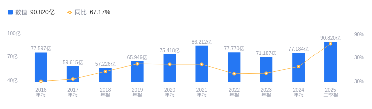 2025年三季度,方正证券营业收入为90.82亿元,行业排名13/45,低于行业第一名中信证券的558.15亿元、第二名国泰海通的458.92亿元,且低于行业平均数94.29亿元,高于行业中位数44.23亿元。净利润为37.11亿元,行业排名12/45,低于行业第一名中信证券的239.16亿元、第二名国泰海通的230.59亿元,低于行业平均数38.81亿元,高于行业中位数17.09亿元。