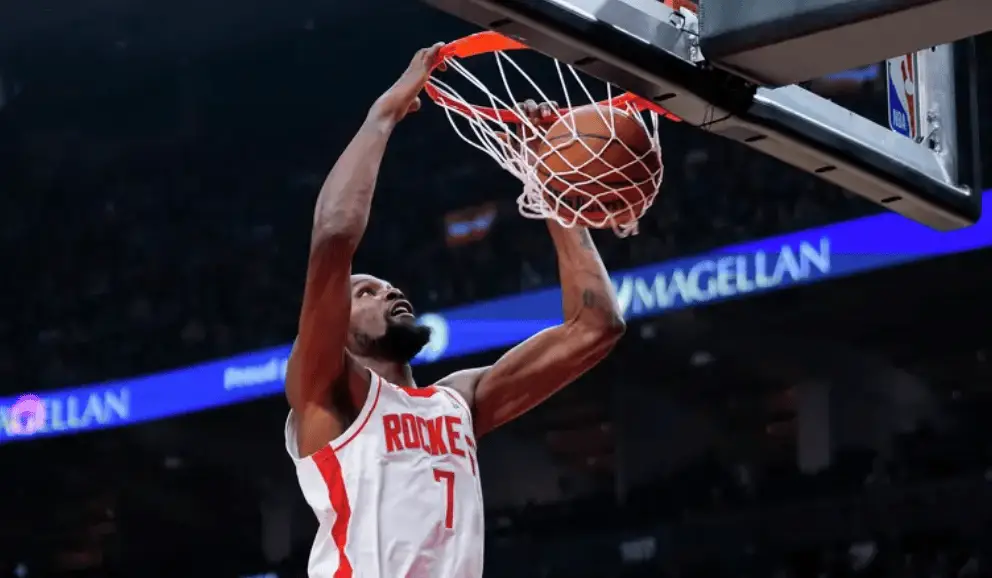 本场比赛,火箭球员凯文-杜兰特出战36分钟,19投11中,其中三分球8投4中,罚球8投5中,得到31分5篮板1助攻3封盖。