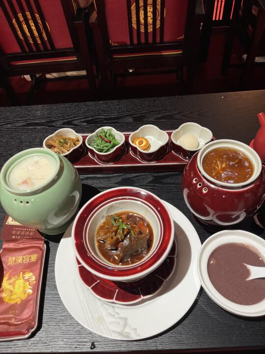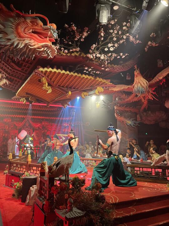 没想到在武汉就能体验楚国宫宴 就在沿江大道的楚汉宫宴 一进门就好像穿越了 场地布置非常唯美 楚王的宫宴非常震撼 灯光音乐也是绝绝子 现场歌舞表演都是历史上的典故! 越王勾践剑、霸王别姬、昭君出塞 狠狠被震撼到了 不仅可以欣赏演出还有美味佳肴 每道菜都像艺术品摆盘精美 一边品尝佳肴一边欣赏表演 好像终于get到楚王的快乐🎉 快带上搭子去赴约一场盛大的楚王宫宴吧 就在江汉关沿江一号