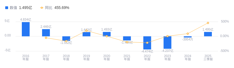 2025年三季度,锦龙股份营业收入为6.43亿元,在行业45家公司中排名第45,远低于行业第一名中信证券的558.15亿元和第二名国泰海通的458.92亿元,行业平均数为94.29亿元,中位数为44.23亿元。同期净利润为1.5亿元,行业排名第44,行业第一名中信证券净利润239.16亿元,第二名国泰海通230.59亿元,行业平均数为38.81亿元,中位数为17.09亿元。