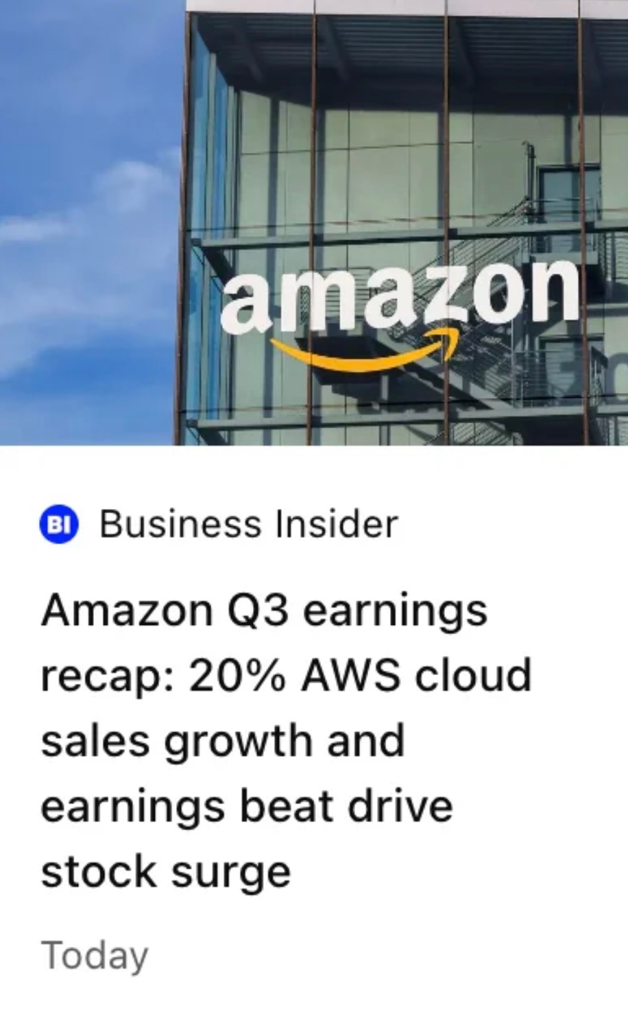 亚马逊市值骤增近3000亿美元AWS 云业务暴涨 20%,利润高得离谱。亚马逊重合增长巅峰,华尔街激情被点燃了。还得赶上Ai啊。