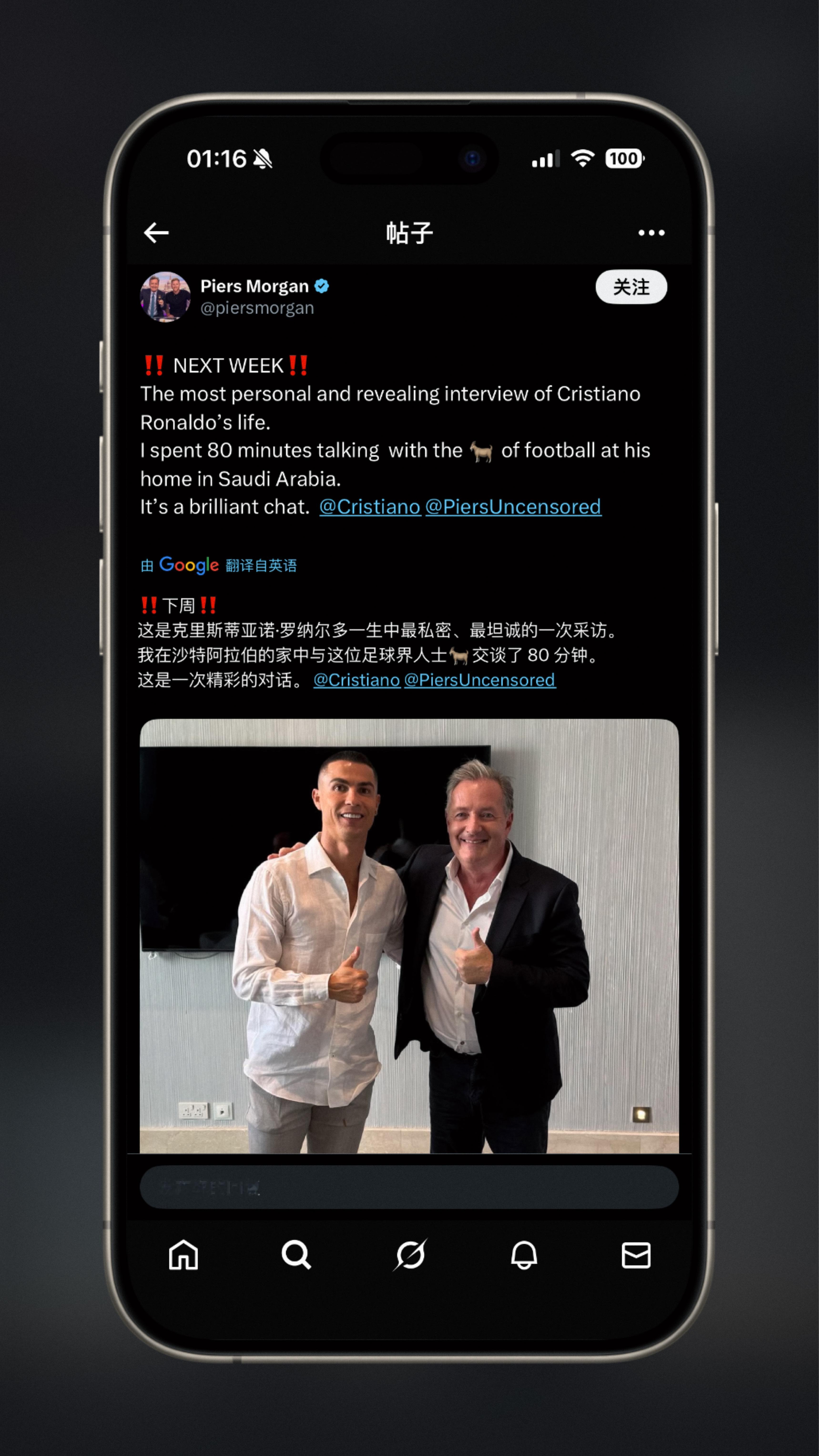 摩根预告C罗新采访 ✦ 摩根C罗新专访的二次预告,他很兴奋。80分钟的交谈,再次