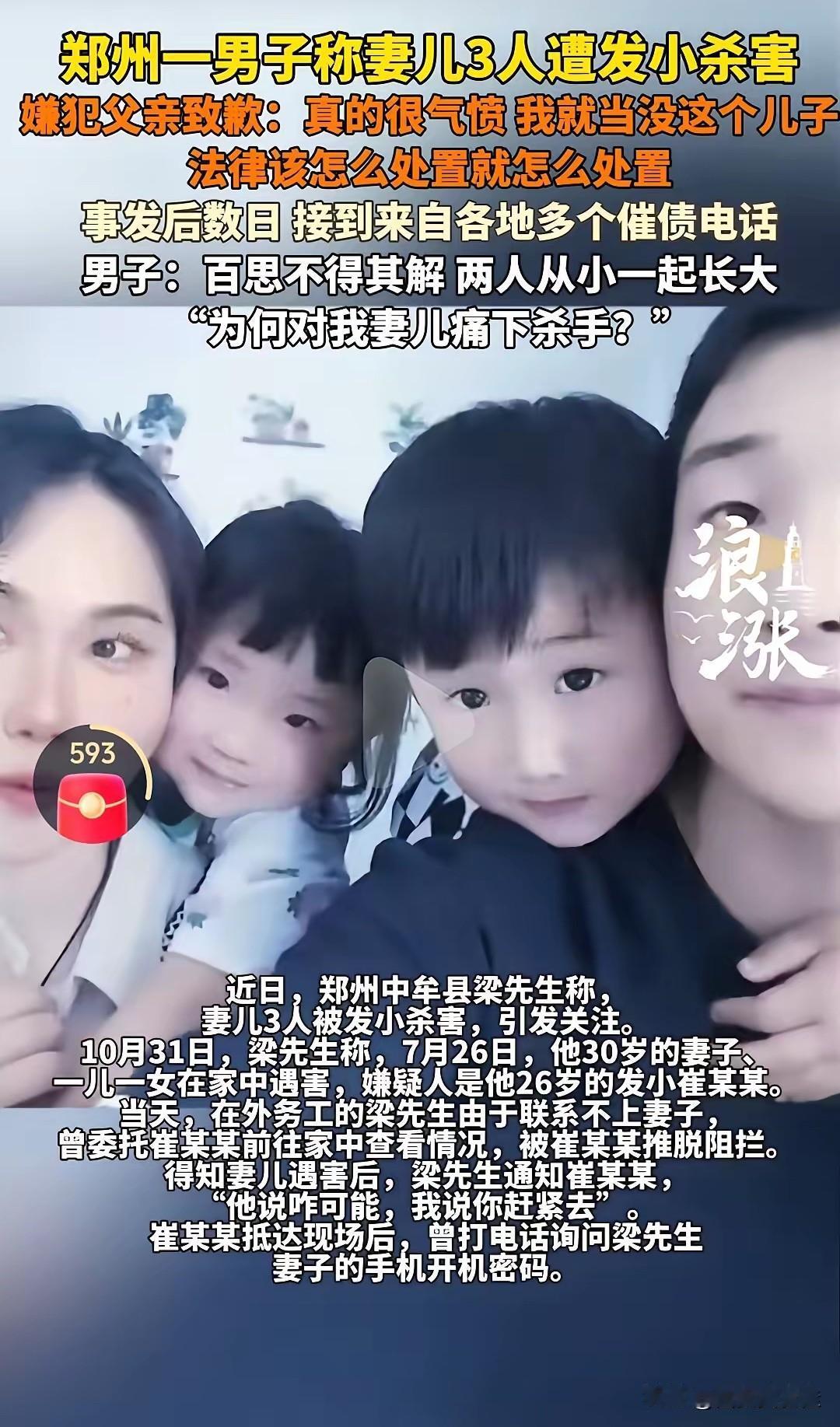 谁能想到自己的大小会杀害自己的妻儿?! 这起令人痛心疾首的悲剧,自己的大小竟对妻儿三人痛下杀手,何其残忍,又何其令人心寒!这绝非一句简单的“遇人不淑”所能诠释。在这个被利益裹挟、物欲横流的时代,金钱似乎成了许多人眼中的唯一信仰。当看到他人过得比自己好,嫉妒的火种便悄然点燃,逐渐演变成不择手段的歪门邪道。 信任,本是人与人之间最珍贵的纽带,如今却在这般丑恶行径面前摇摇欲坠。但即便如此,我们仍应坚守内心的善良与纯真,不因个别黑暗而否定整个世界的光明。只是,这惨痛的教训,也让我们不得不深思:在追求物质的同时,是否该多一份对人性、对情感的珍视?否则,信任崩塌之日,便是人心荒芜之时。